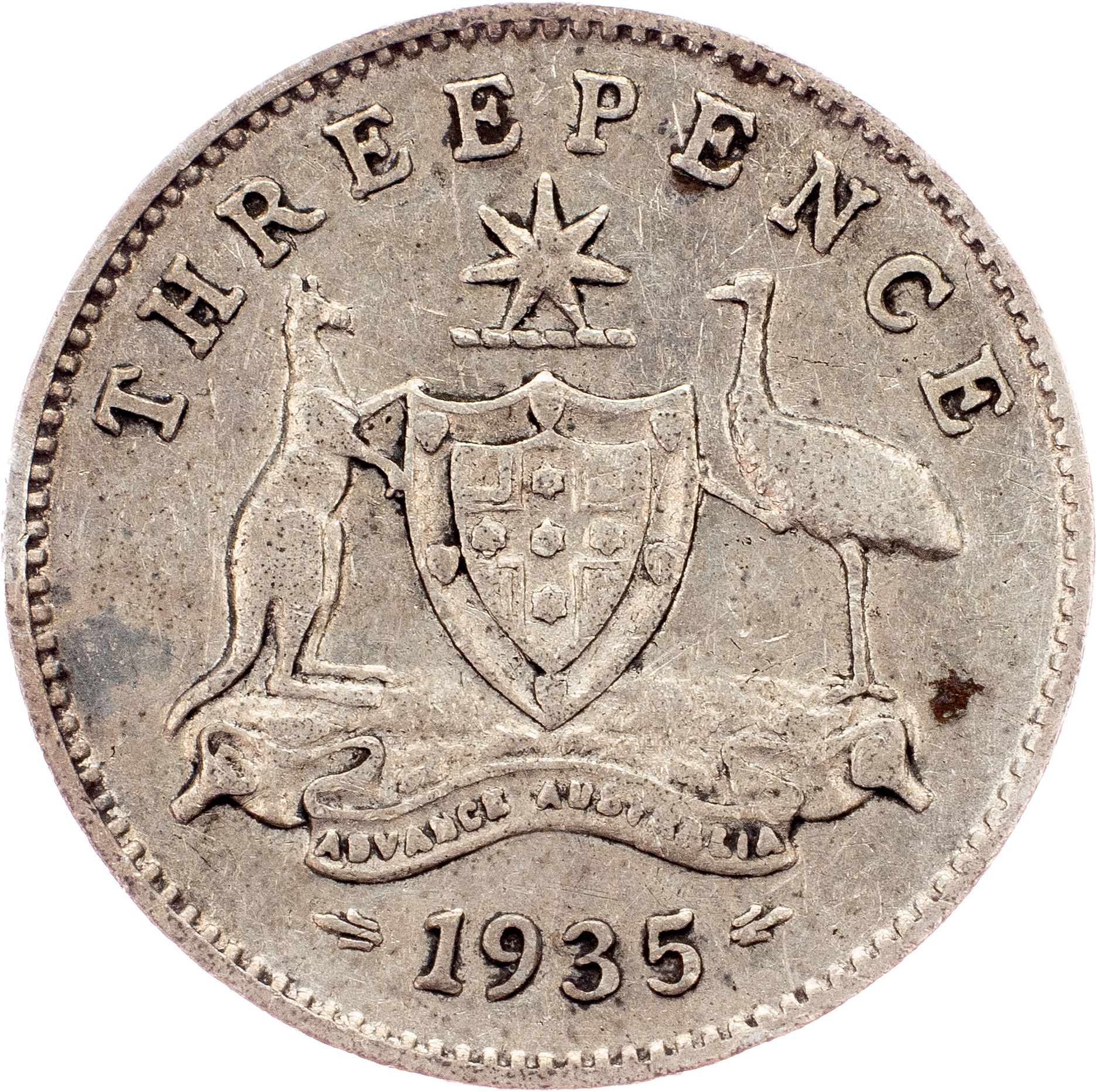 Australia, George V., 3 Pence 1935, 1,367 g, Ag (925/1000), KM# 24; VF