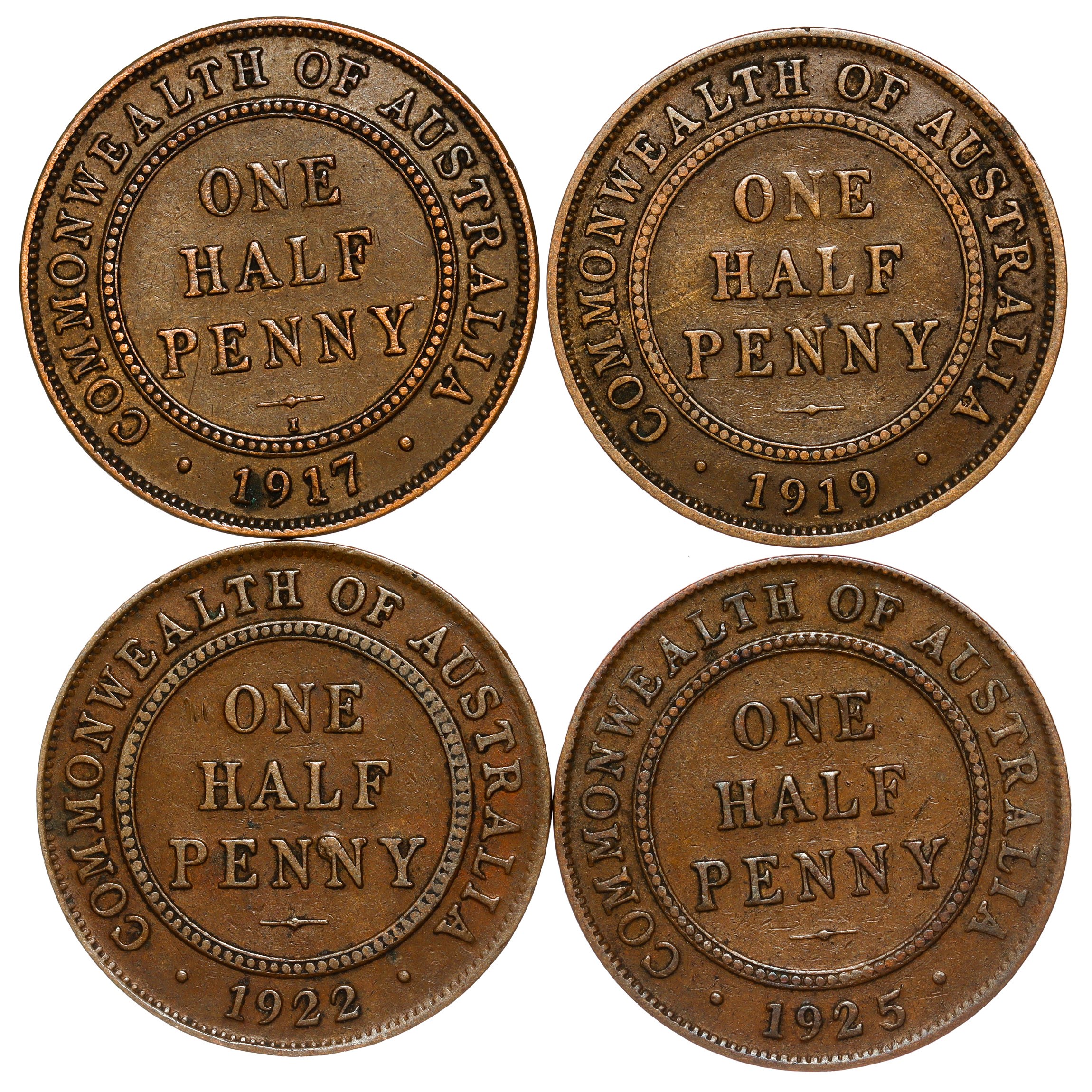One Half Penny Lot – 4 pcs – 1917-1935