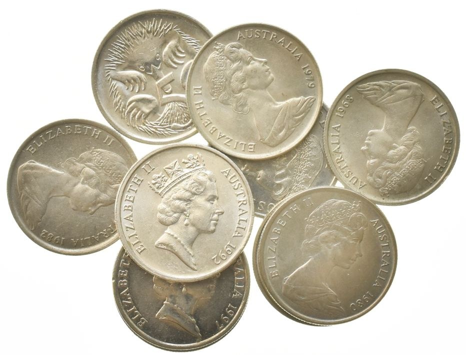 Austrálie, Elizabeth II. 1952-, 5 cents 1968, 79, 80, 82, 83, 92, 94, 97, 99, 01, 10 ks