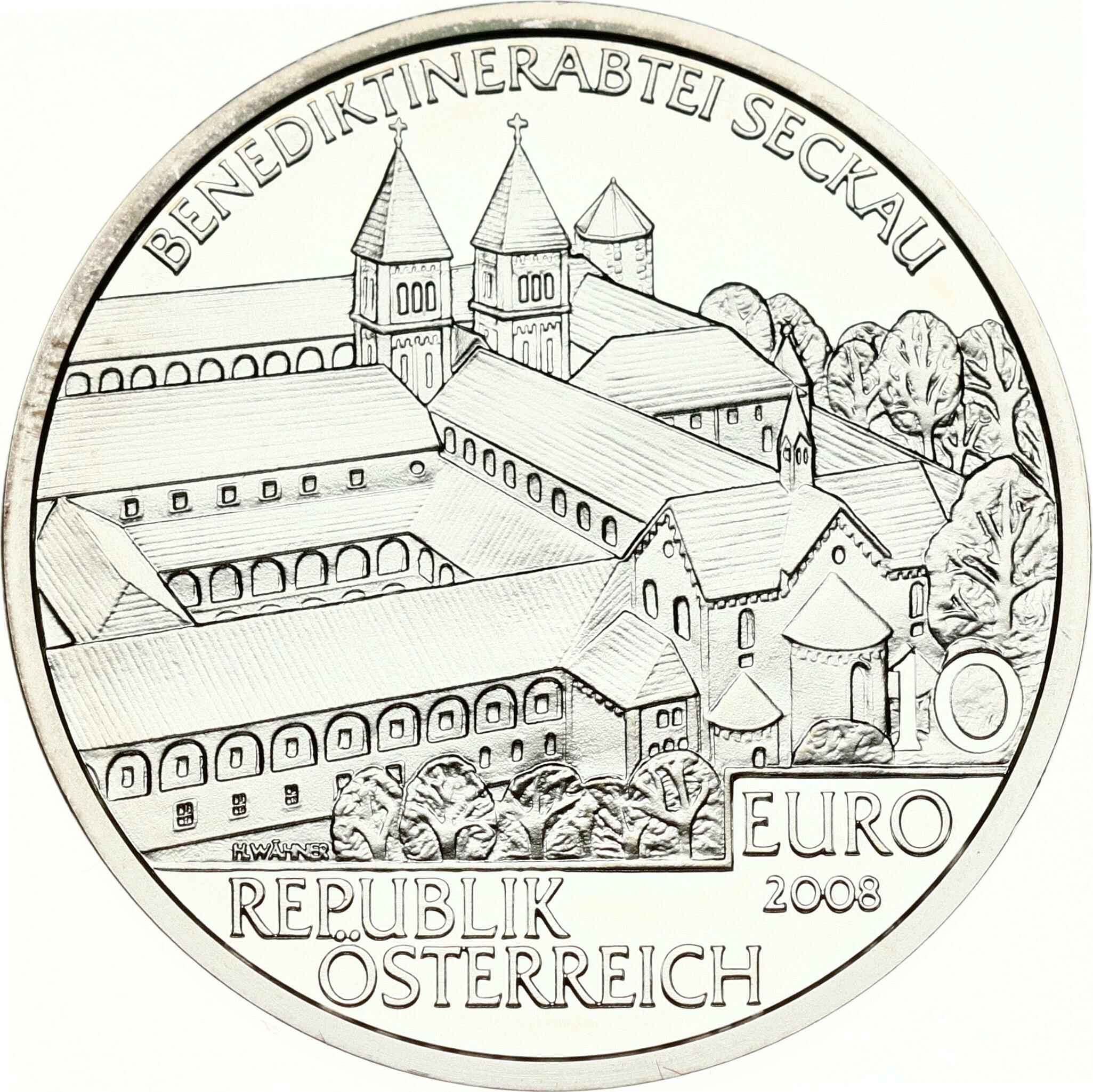 Austria 10 Euro 2008 Seckau Abby. Austria & Its People Series - Seckau Abby. Silver .925, 17.3g. KM-3162. With Box & Certificate