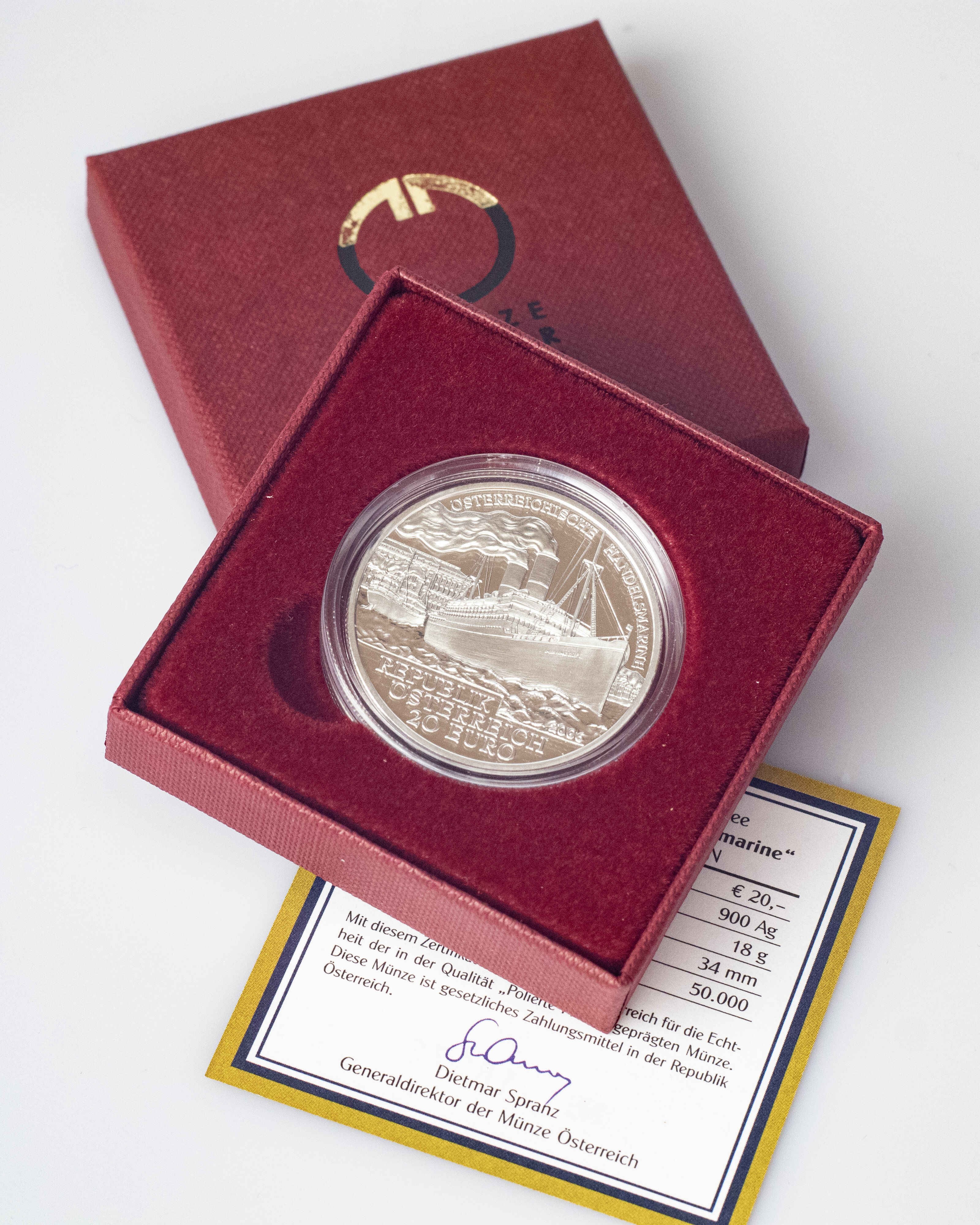 Austria 20 Euro 2006 Austrian Merchant Marine. Austrian Navy and Merchant Marine Series - Austrian Merchant Marine. Silver .900, 20.03g. KM-3133. With Box & Certificate
