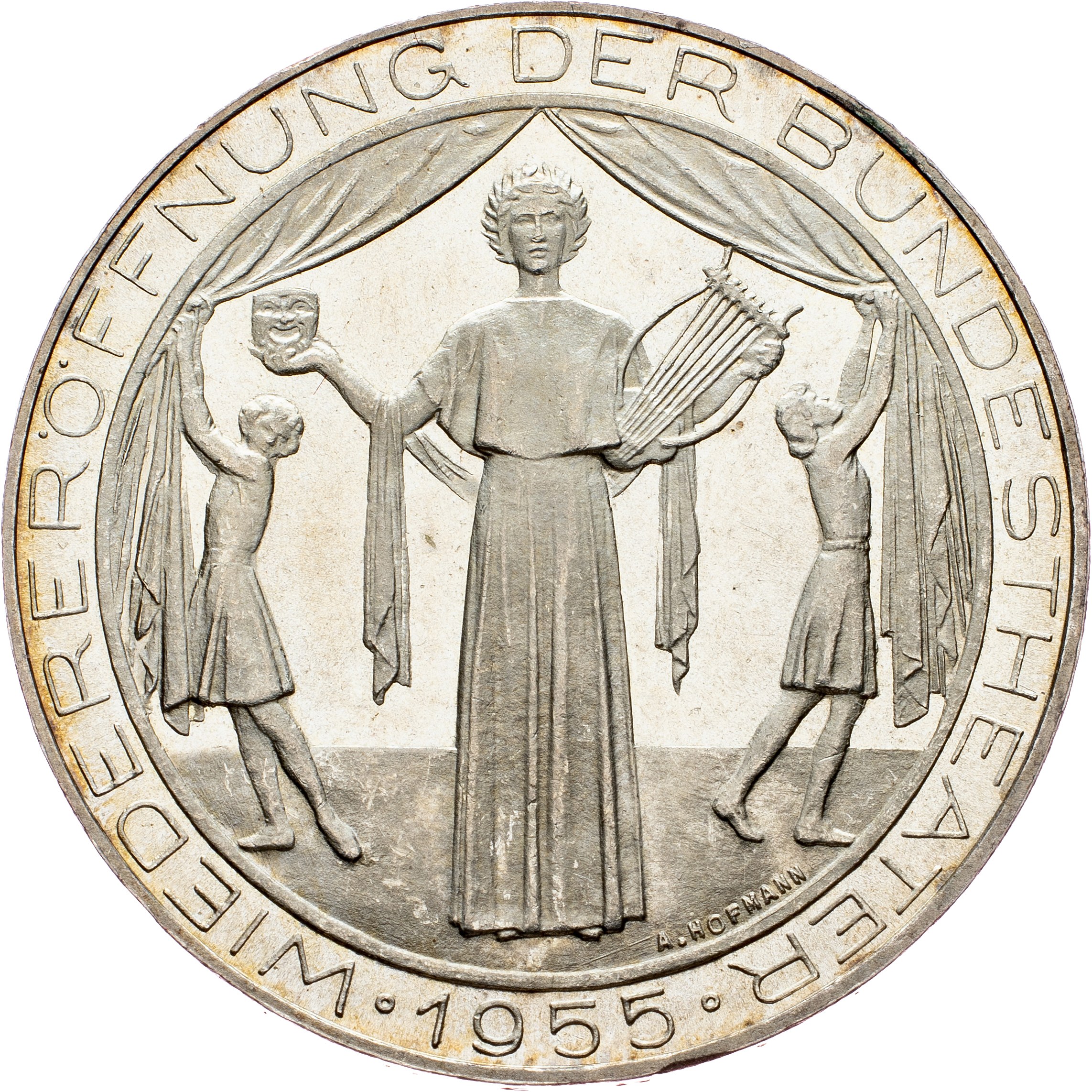 Austria, 25 Schilling 1955, Vienna, Ag|Reopening of the National Theater in Vienna, mint luster; UNC