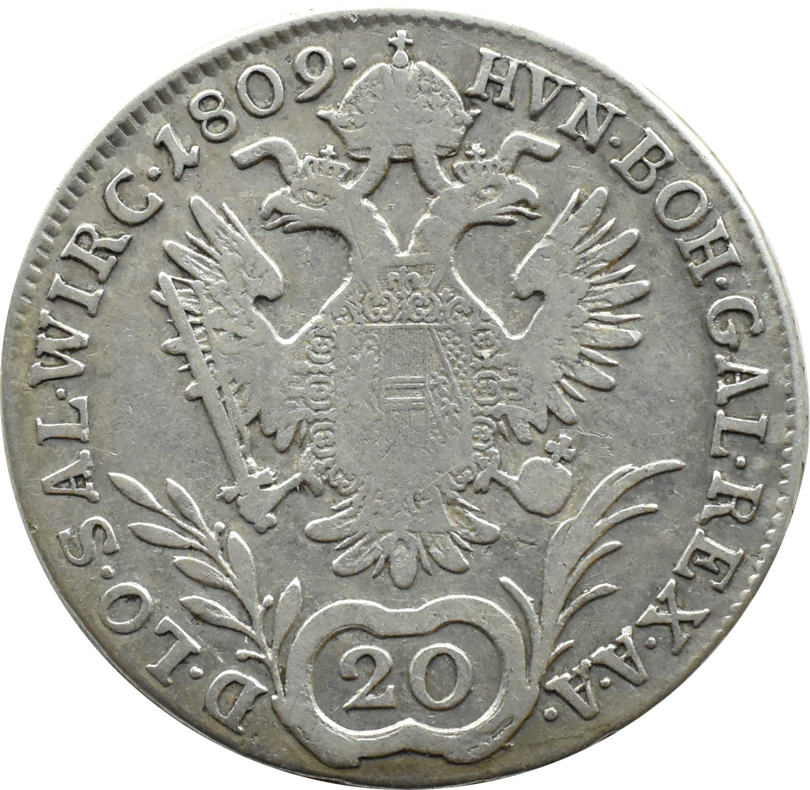 Austria, Franciszek II Habsburg (1792-1835), 20 krajcarów 1809 A, mennica Wiedeń