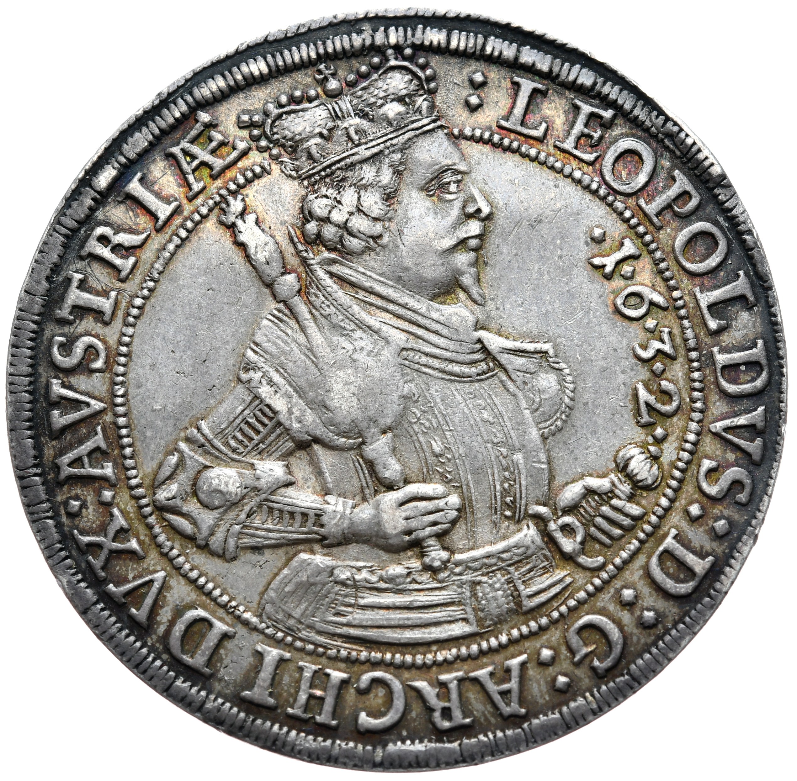 Pięknej prezencji talar z popiersiem i tytulaturą cesarza Leopolda V. Bardzo dobry detal, obustronna patyna starego zbioru.