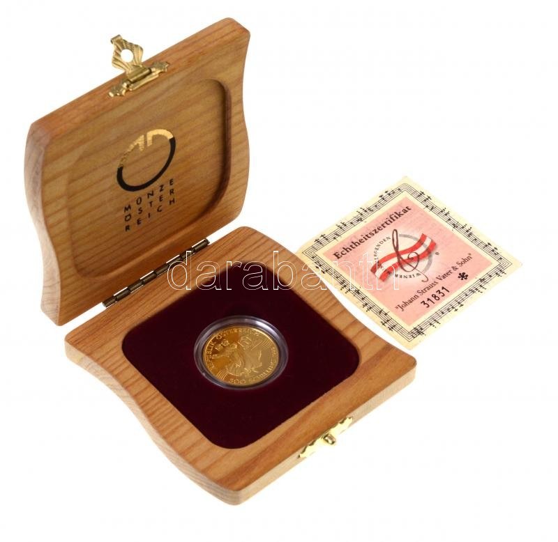 Ausztria 1997. 500Sch Au "Franz Schubert" eredeti "Münze Österreich" fa tokban és tanúsítvánnyal T:PP / Austria 1997...