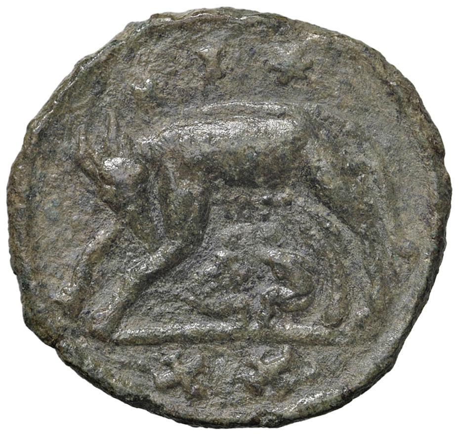 OSTROGOTHS Athalaricus (526-534) 20 Nummi (Rome) Helmeted head of Rome r. - R/ Wolf standing l., XX in exergue - MEC 97 AE (g 9.66)