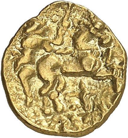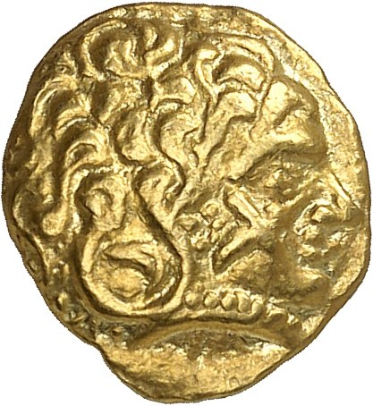 De flan large et de frappe remarquable, bien centrée. Le buste est très bien venu, avec tous ses détails et n’est pas sans rappeler le quart des Parisii (DT.77). Semble inédit et non répertorié. De mêmes coins que MDC 13 n°1062. Ce quart de statère fera prochainement l’objet d’une publication dans une revue savante. Superbe à Fleur de coin.