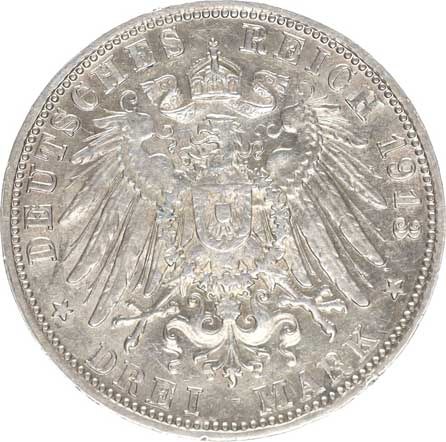 Bavorsko, Otto (1886-1913), 3 Mark 1913 D KM 515, zc. nep. hr.