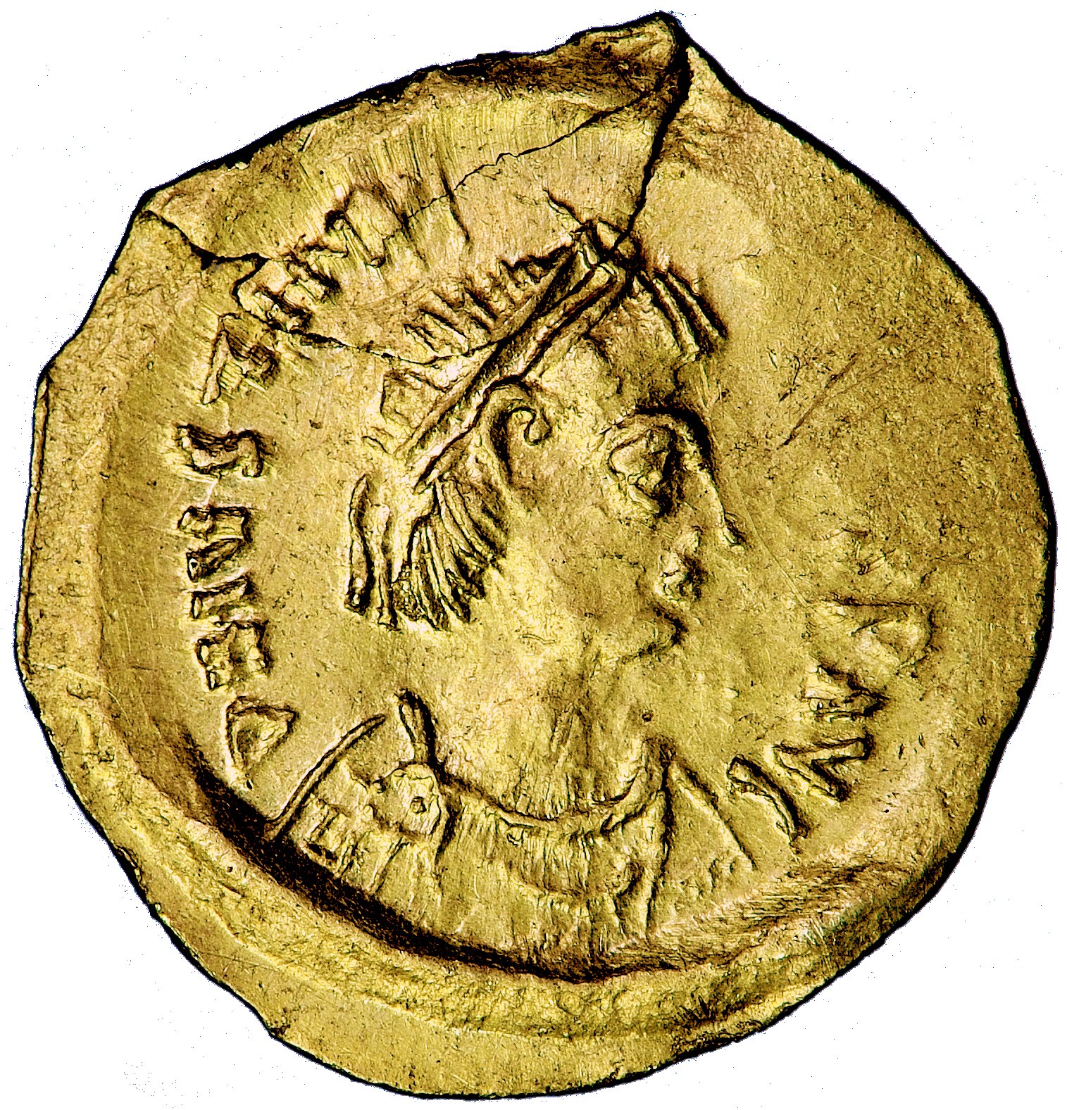 Spory naddatek złotej blaszki został zagięty do środka i dopiero wówczas przybito stempel awersu.