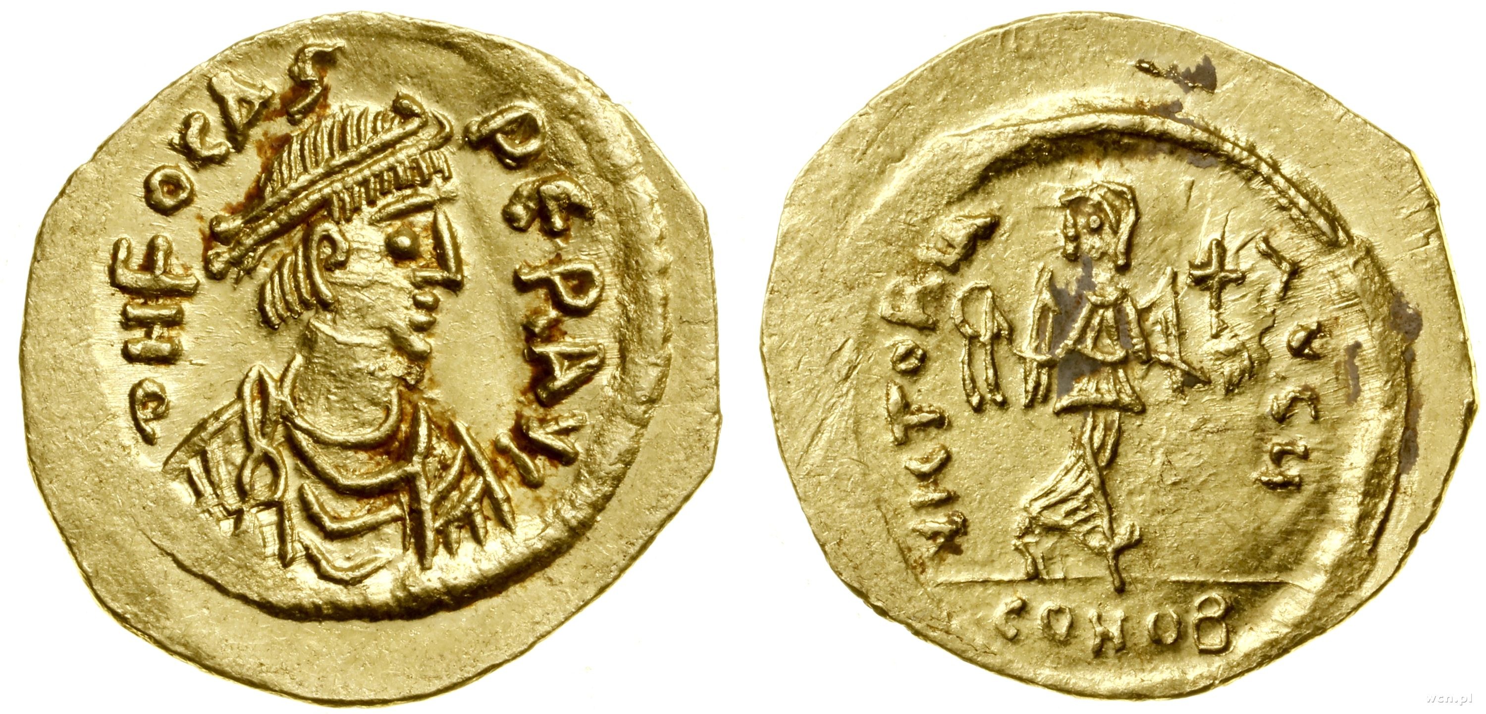 Aw: Popiersie władcy w prawo, d N FOCAS PΕRP AVI; Rw: Wiktoria w prawo z głową zwróconą w lewo, trzymająca wieniec i globus, legenda VICTORIA AVGV, w odcinku CONOB
