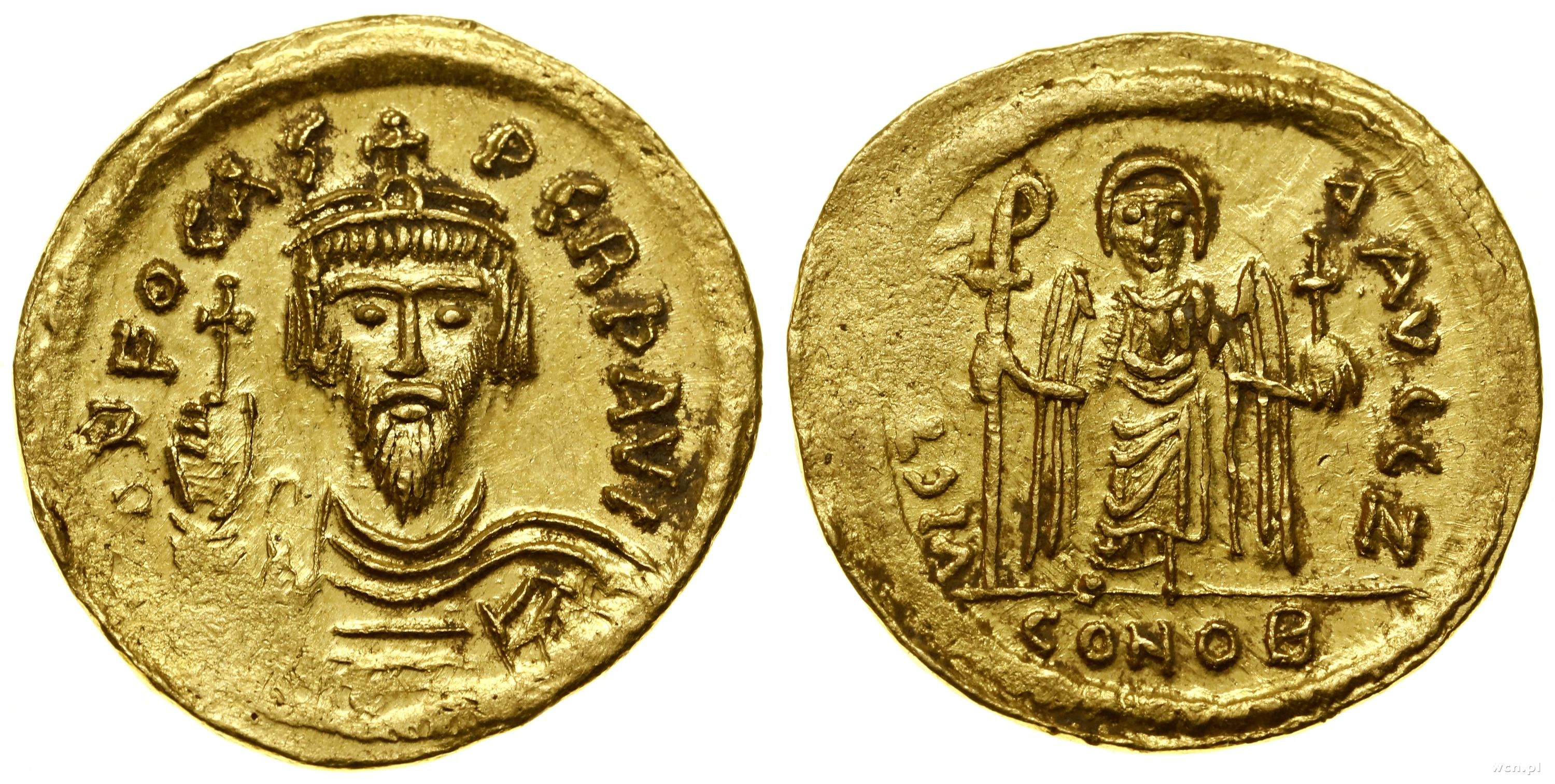 Aw: Popiersie władcy na wprost, dN FOCAS PERP AVG, Rw: Anioł z berłem zakończonym chrystogramem oraz jabłkiem królewskim, VICTORIA AVGG, oficyna Z, w odcinku CONOB