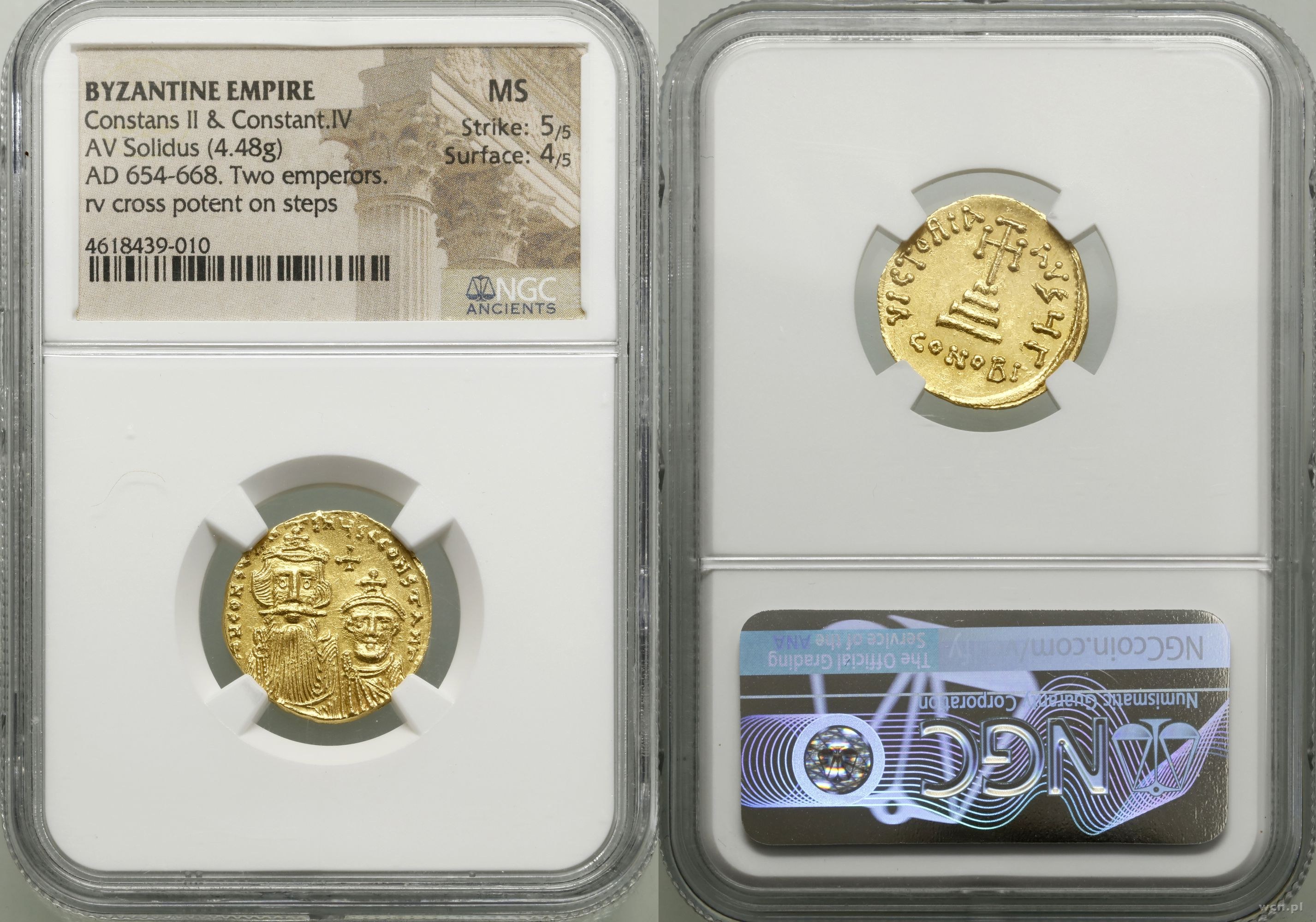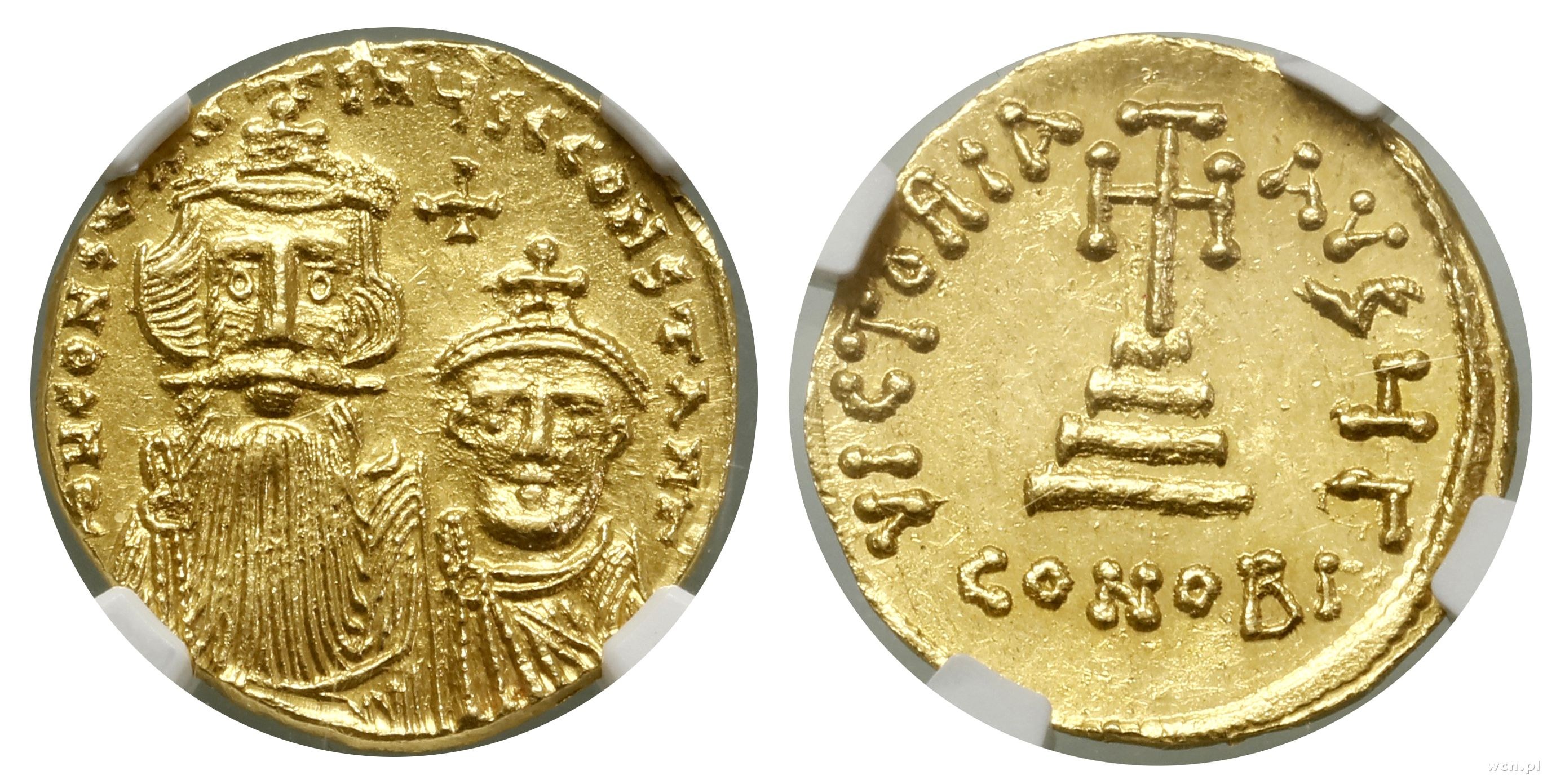 Aw: Popiersia cesarzy na wprost, napis dN CONSTATINЧS C CONSTANTI; Rw: Krzyż na czterostopniowym postumencie, VICTORIA AVGЧ, oficyna Г, w odcinku CONOB