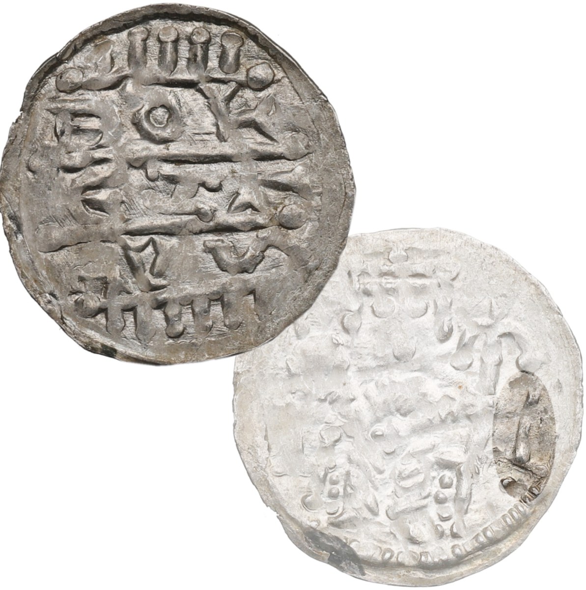 Bardzo rzadka odmiana z MIECZEM po prawej stronie postaci, zamiast częstych półksiężyców na awersie.