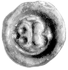 brakteat; Gotycka litera B, z lewej strony w polu trzy ...