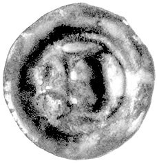 brakteat; Gotycka litera D, po lewej w polu trzy kule, ...