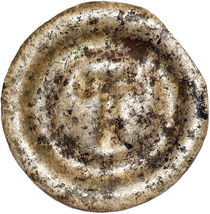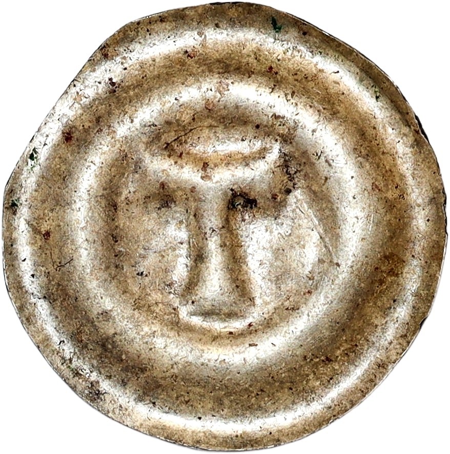 Bardzo rzadki brakteat, pierwotnie przypisywany do mennicy w Toszku, jednak tu odmienny krój litery T.