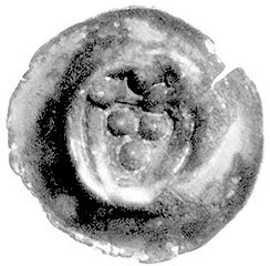 brakteat; Na tarczy trzy kule, powyżej jedna kula, Wasc...