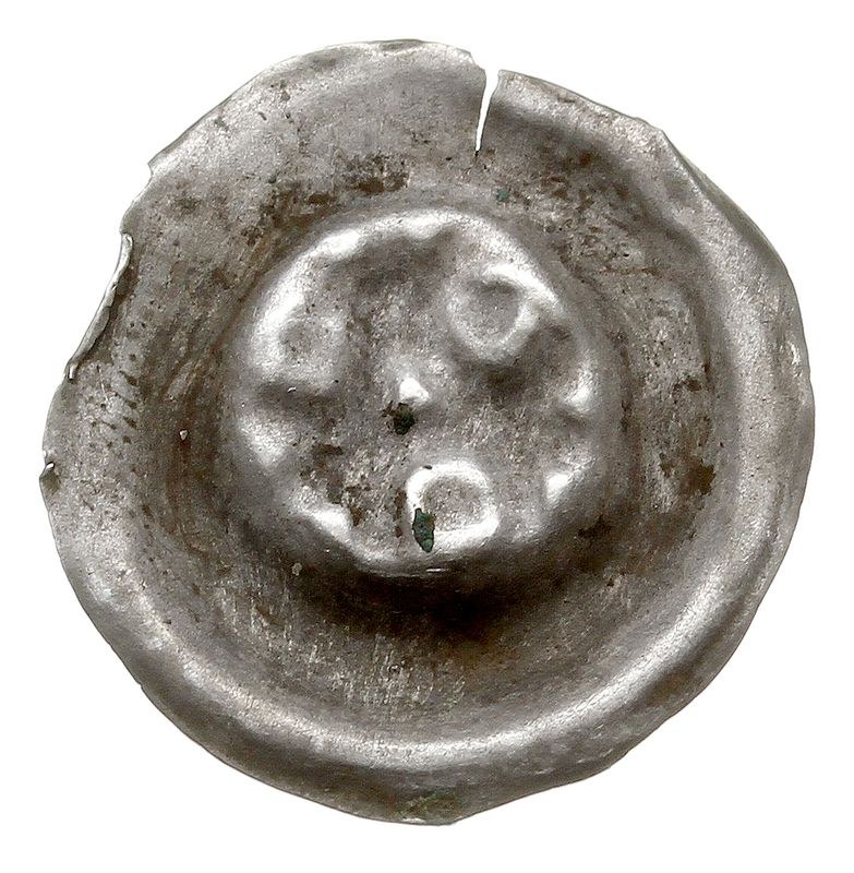 ŚLĄSK, brakteat, Potrójna roślina, srebro 0.23 g, Fbg 1023, znany ze skarbu z Lichenia, ciekawa odmiana z kulkami