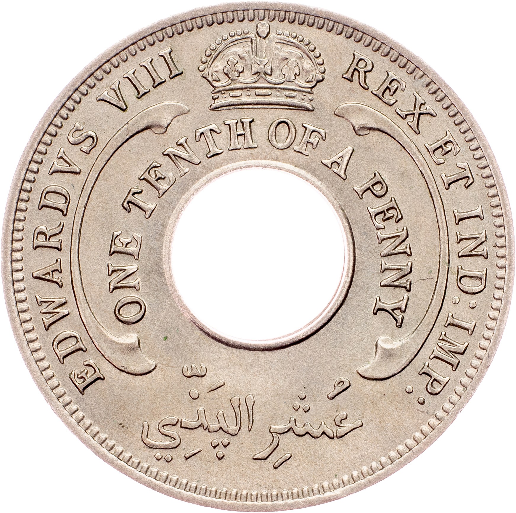 British West Africa, Edward VIII., 1/10 Penny 1936, London, 1,936 g, Copper-nickel, KM# 14, mint luster, toned; UNC
