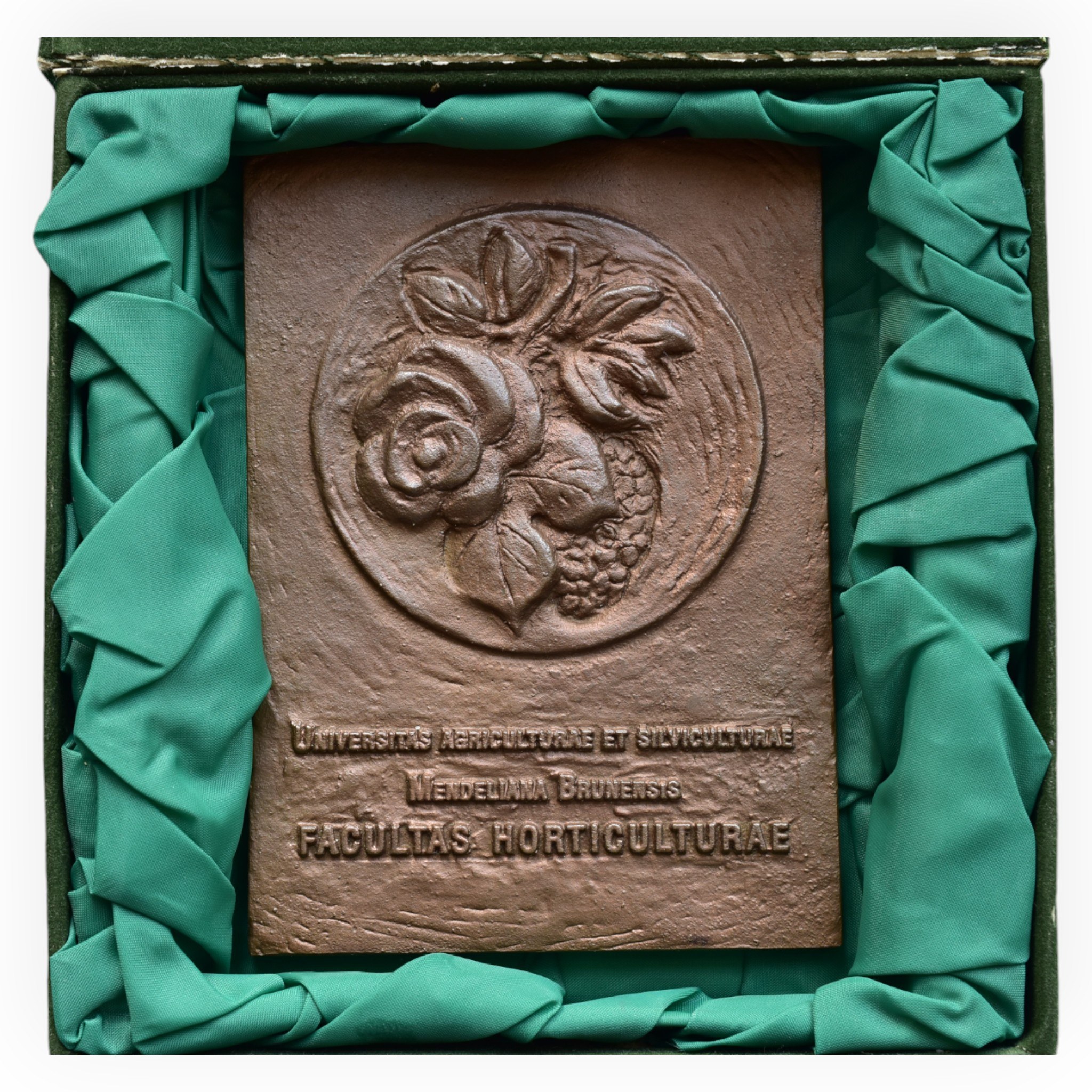Brno, Mendelova univerzita v Brně, oboustraná plaketa 94x130mm, sign P.K., uloženo v orig.etui