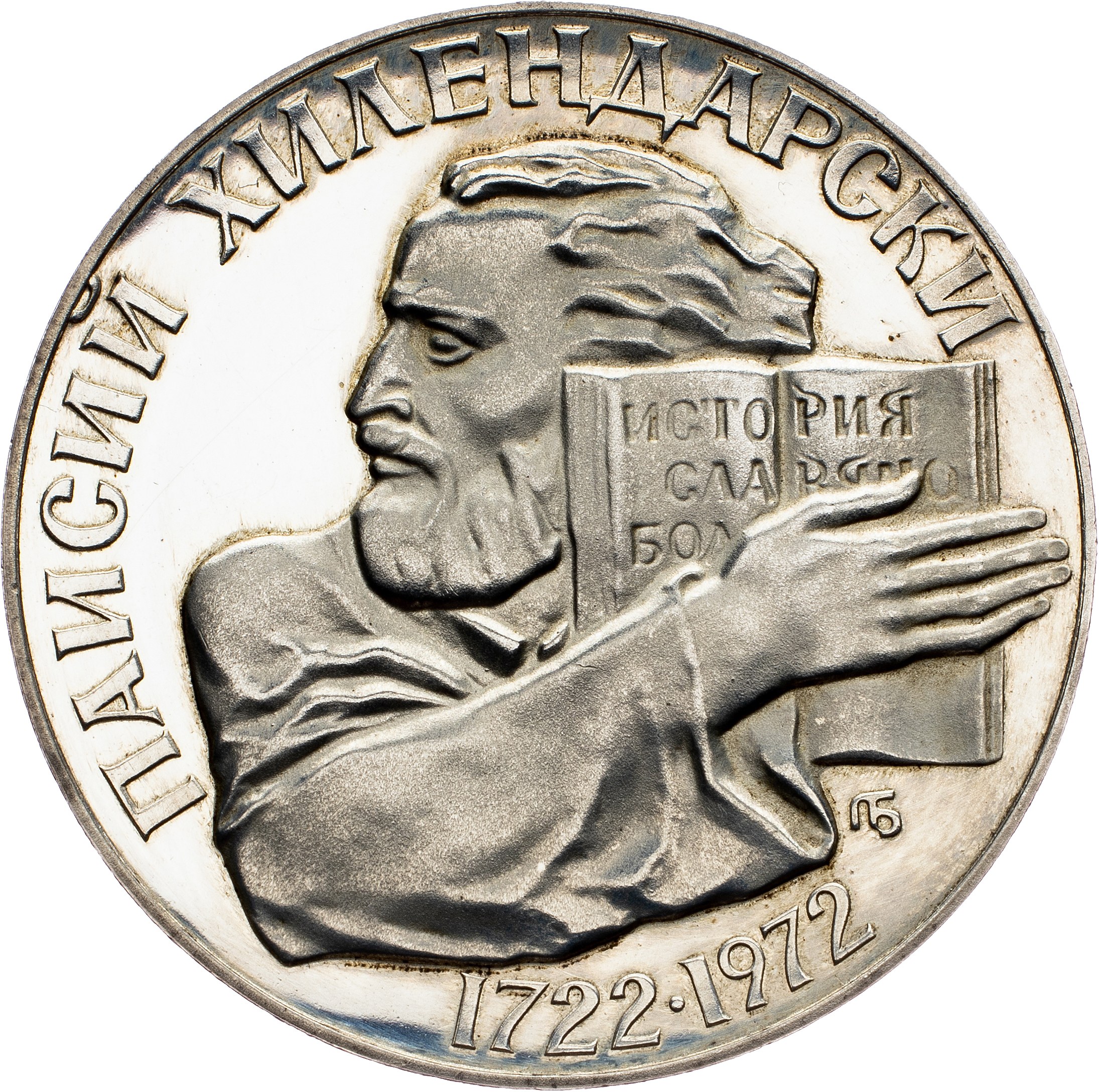 Bulgaria, 5 Leva 1972, Sofia, Ag, KM# 81|250th Anniversary of Paisi Hilendarski, fingerprints, hairlines; PROOF