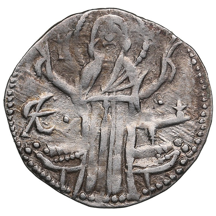 1.59g. 21mm. VF/VF+ Obv.: Christ enthroned facing, raising hands in benediction; IC XC and monograms AΛЄ (Alexander) – ЦР (Tsar; mirrored) across field. Rev.: Ivan Alexander and Michael Asen IV standing facing, each holding cross-tipped scepter, holding banner between them; monograms across field; stars flanking base of staff. Raduchev & Zhekov Type 1.13.3-6; Youroukova & Penchev 74-80. At the beginning of the reign Ivan Alexander had crowned his eldest son Michael co-ruler.