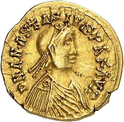 Burgondes, Gundobald (473-516). Trémissis au nom d’Anastase ND (c.510-520), Lyon ?