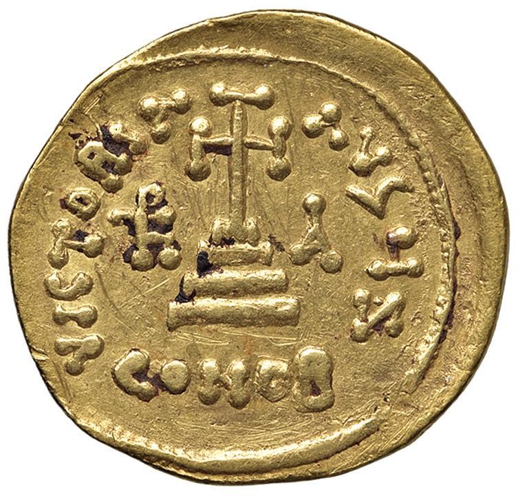 Heraclius (610 - 641) Solidus - The emperors standing facing - R/ Cross potent, in field, monogram - Sear 761 AU (g 4.39) Rev. scratches and deposits