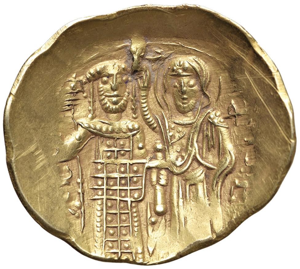 NICAEAN EMPIRE John III (1222-1254) Hyperpyron - Christ seated on throne facing - Reverse The emperor facing crowned by the Virgin - Sear 2073 AU (g 4.46) Scratches on the edge on the obverse and reverse