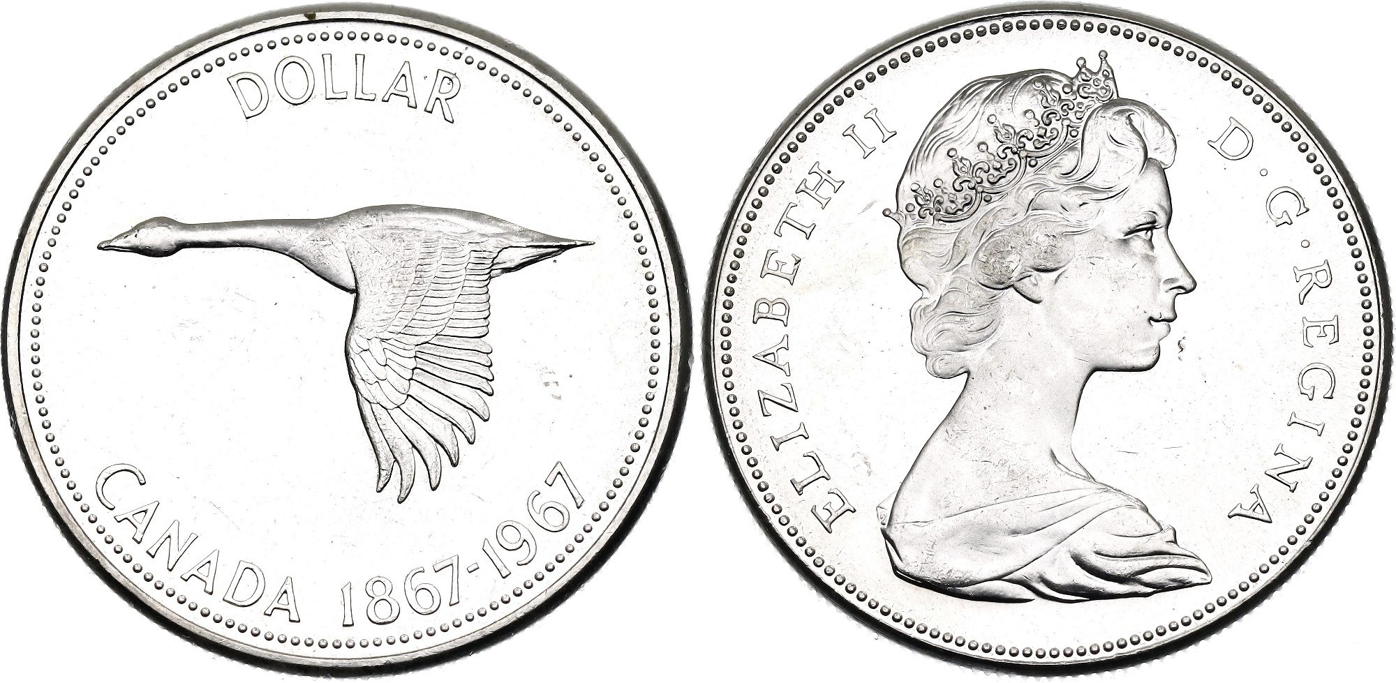 KM# 70, Schön# 72, N# 457; Silver; Elizabeth II; 100th Anniversary of Canada; UNC with a few hairlines