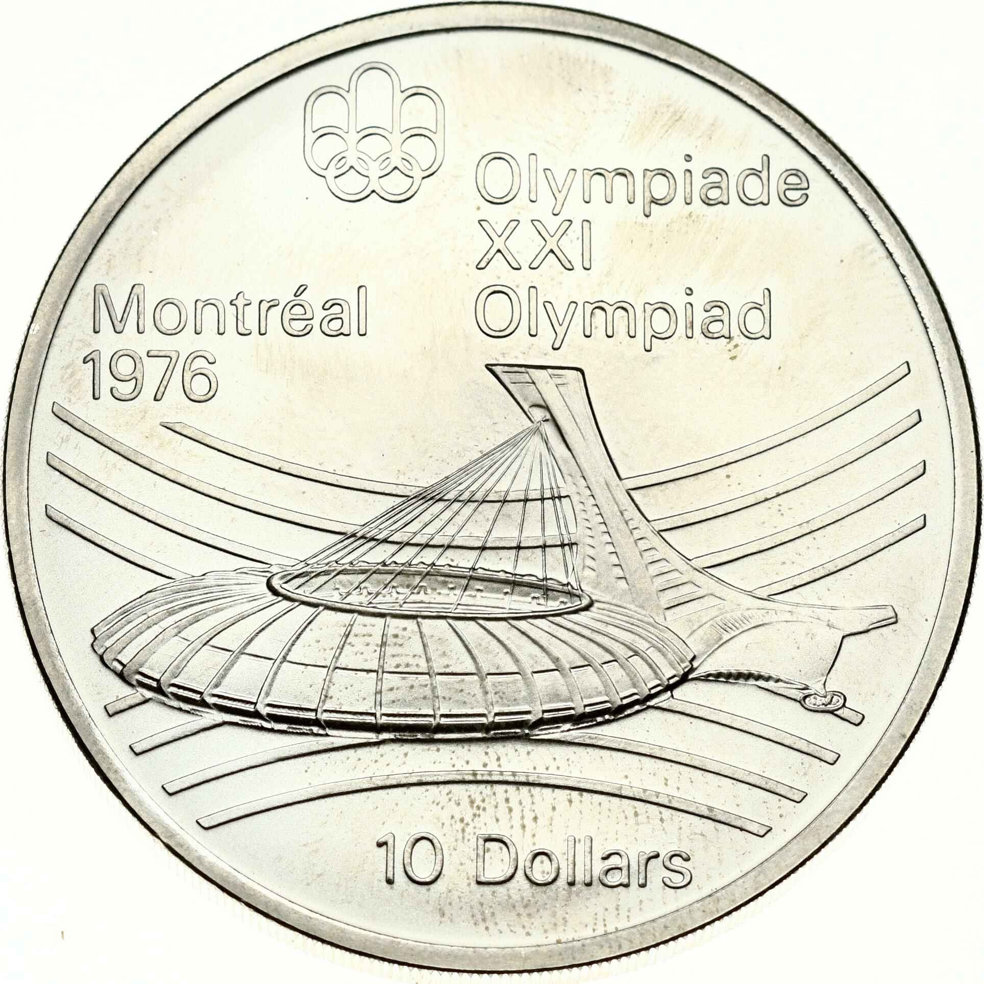 Canada 10 Dollars 1976 Olympic Stadium. Elizabeth II (1952-2022). 1976 Olympics Montreal. Silver .925, 48.6 g. KM-113