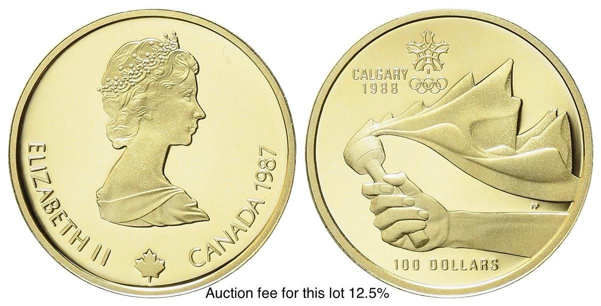 1988. Olimpic Games of Calgary. Au fineness 583 (13.34 g). 1/4 ounce pure gold (7.77 g). PROOF.