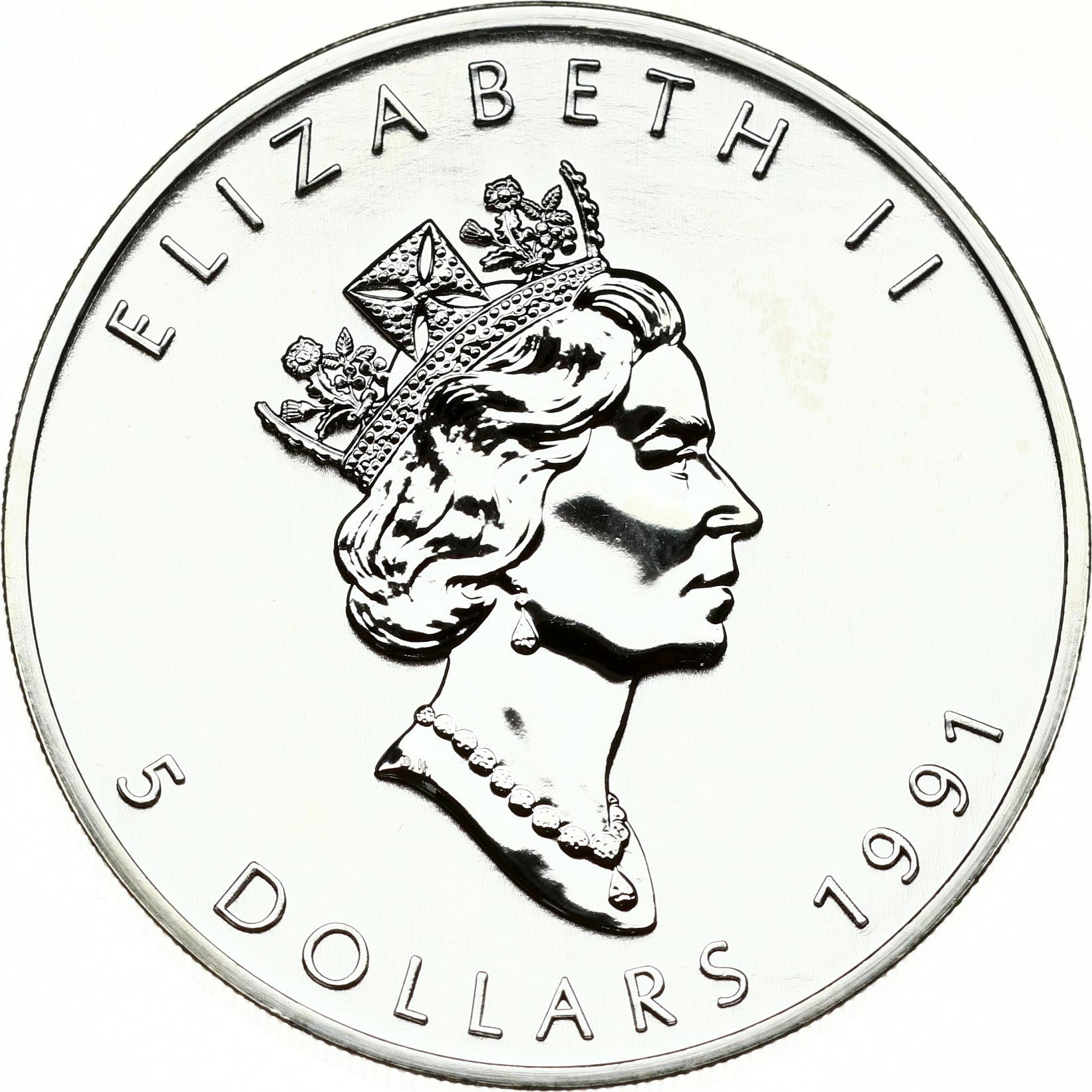 Canada 5 Dollars 1991 Elizabeth II (1952-2022). Silver .9999, 31.21 g. KM-187