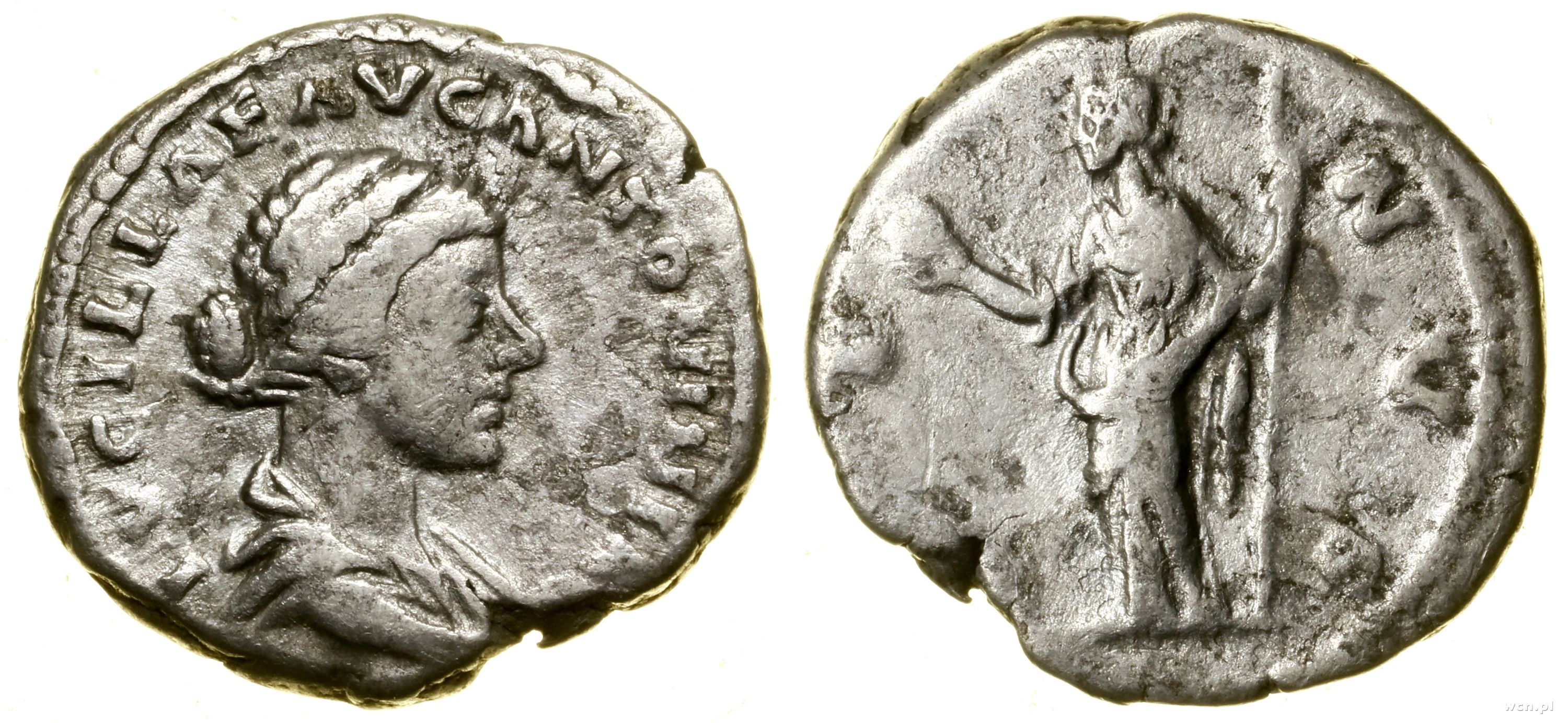 Aw: Popiersie cesarzowej w prawo, LVCILLAE AVG ANTONINI AVG F, Rw: Wenus stojąca na wprost, z głową w lewo, trzymająca berło i glob, VENVS