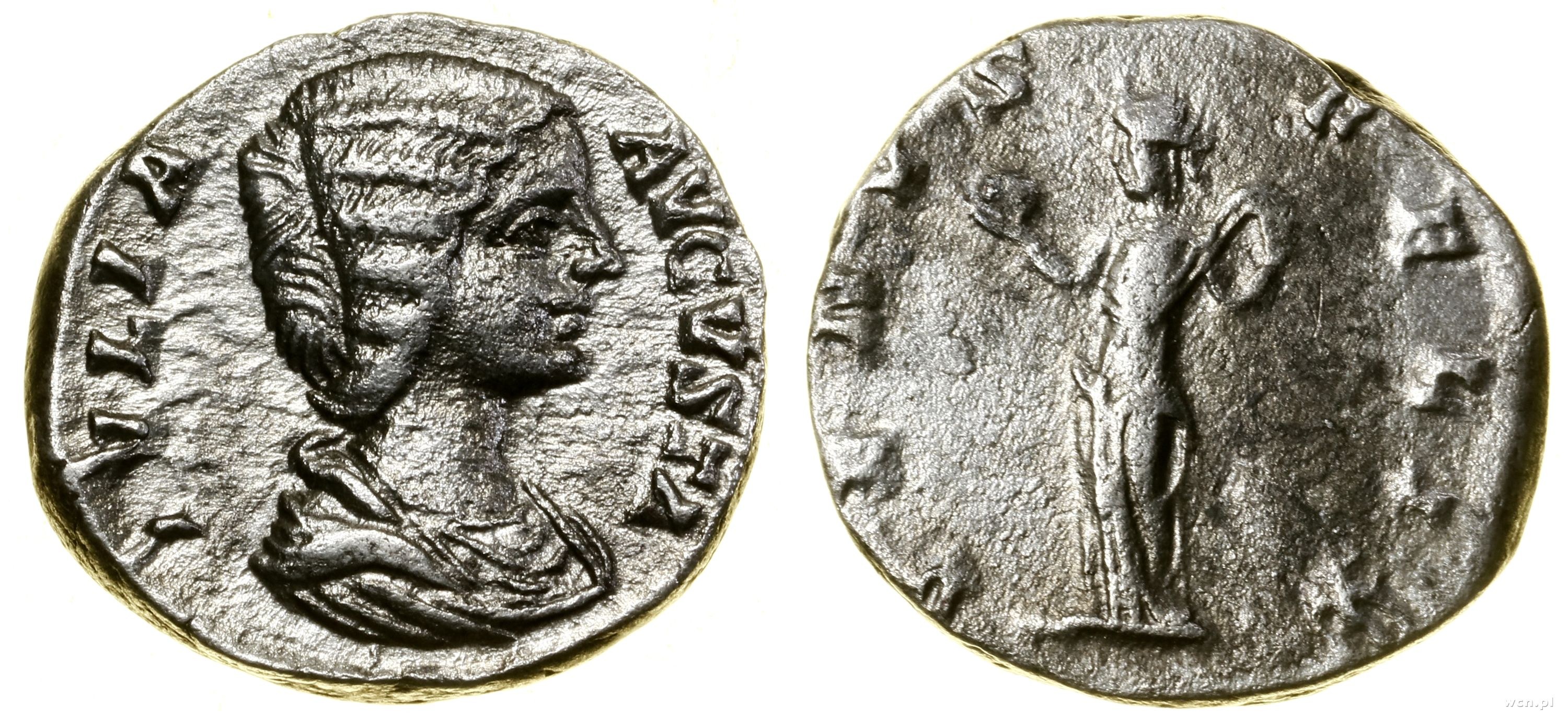 Aw: Popiersie cesarzowej w prawo, IVLIA AVGVSTA, Rw: Wenus stojąca na wprost , głowa w lewo, trzymająca jabłko w prawej dłoni, lewą poprawia szatę, VENVS FELIX