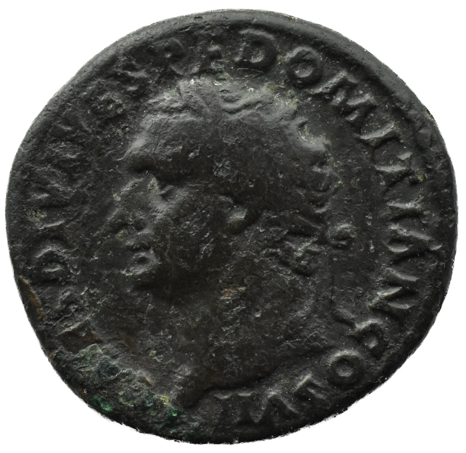 awers: głowa cesarza w lewo i legenda: CAES DIVI VESP F DOMITIAN COS VII