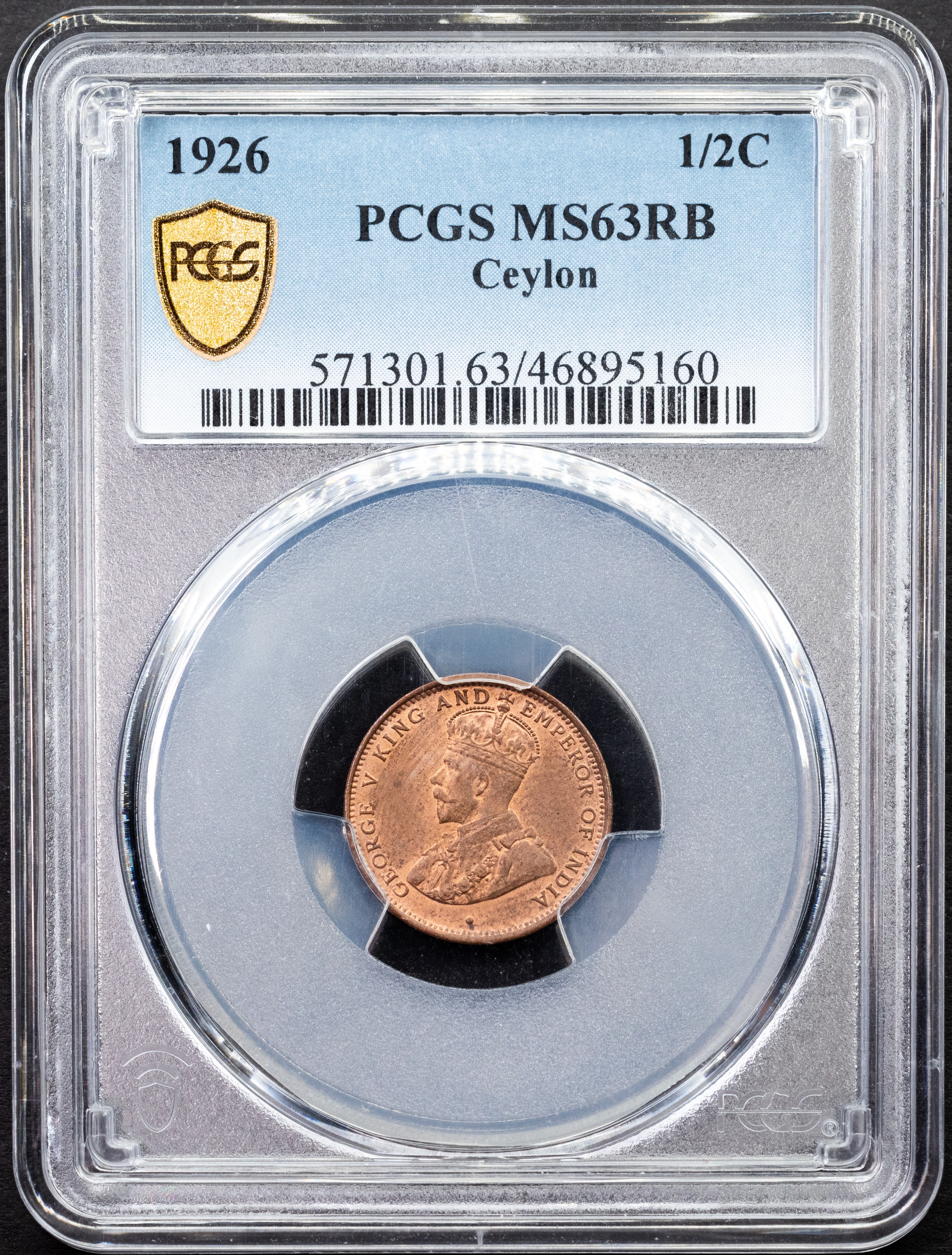 NGC/PCGS Description: Ceylon, 1/2C 1926