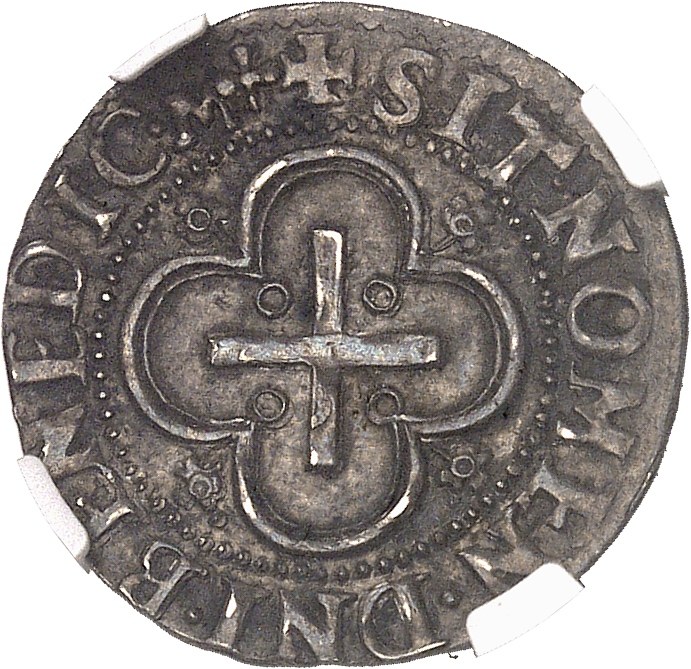 Rv. + SIT. NOMEN. DNI. BENEDIC (différent) (trèfle). Croix dans un quadrilobe annelé, cantonné de quatre petits trèfles.