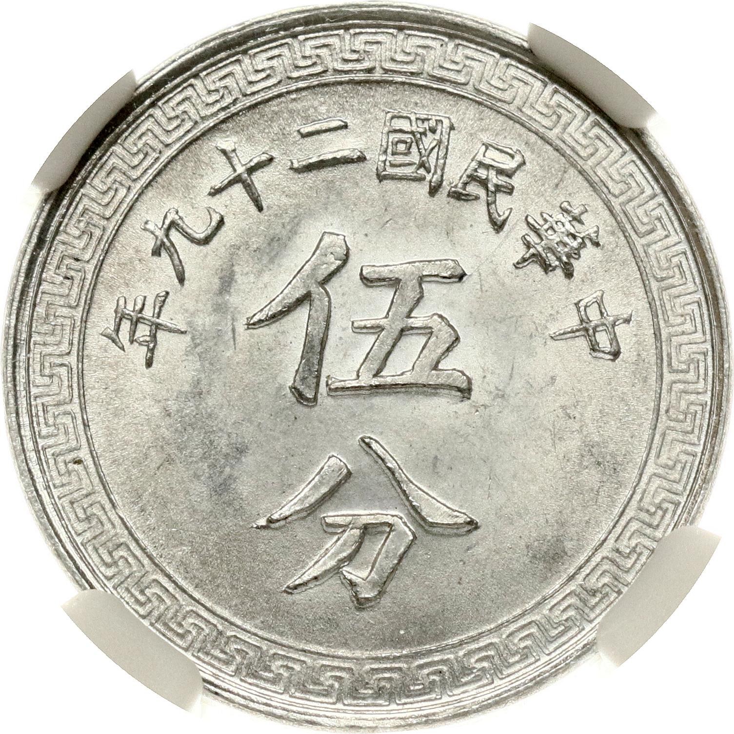 China 5 Cents 29 (1940) NGC MS 64
