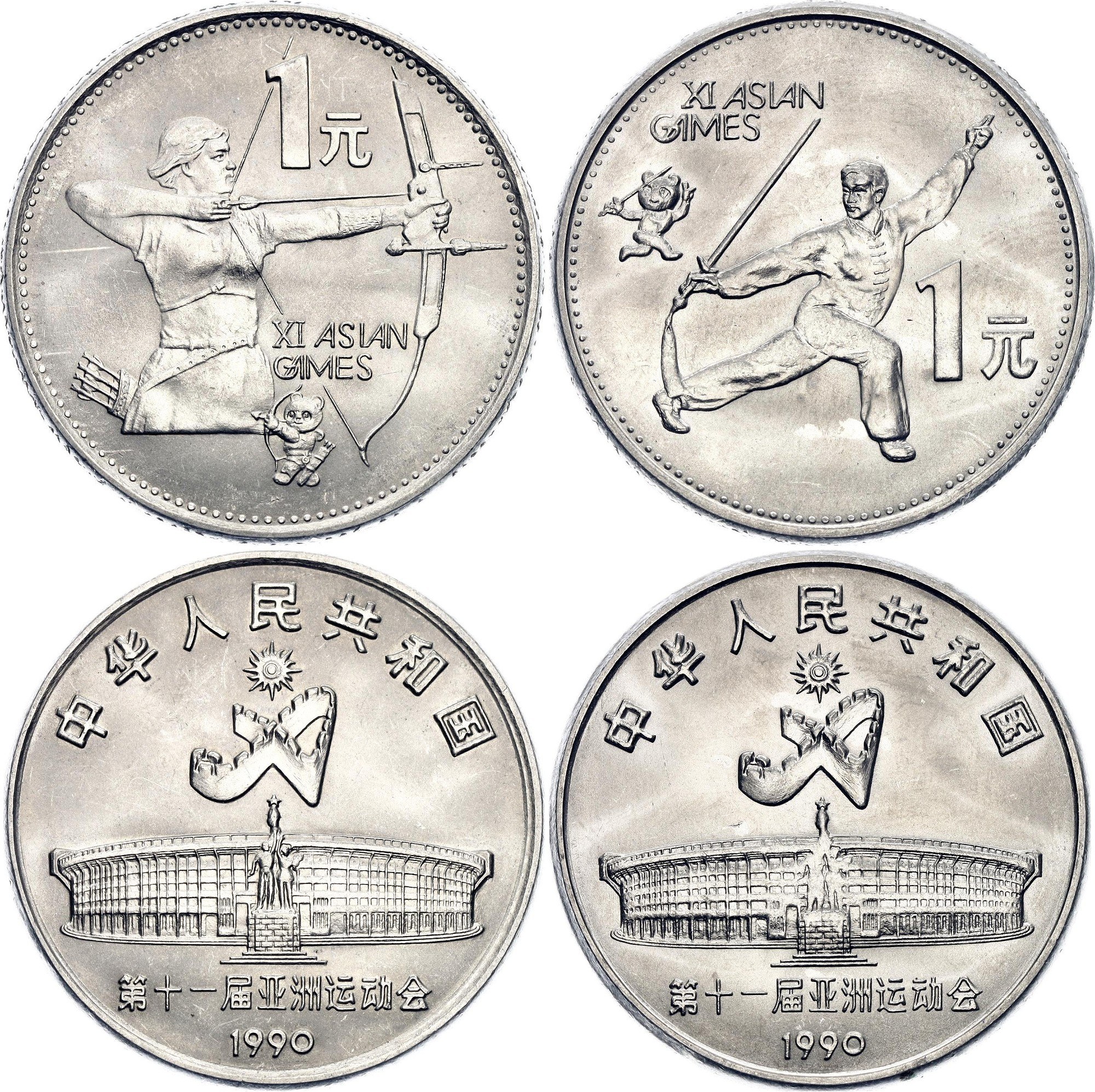 KM# 264, 266; Copper-nickel clad steel; 1990 Asian Games, Beijing; UNC