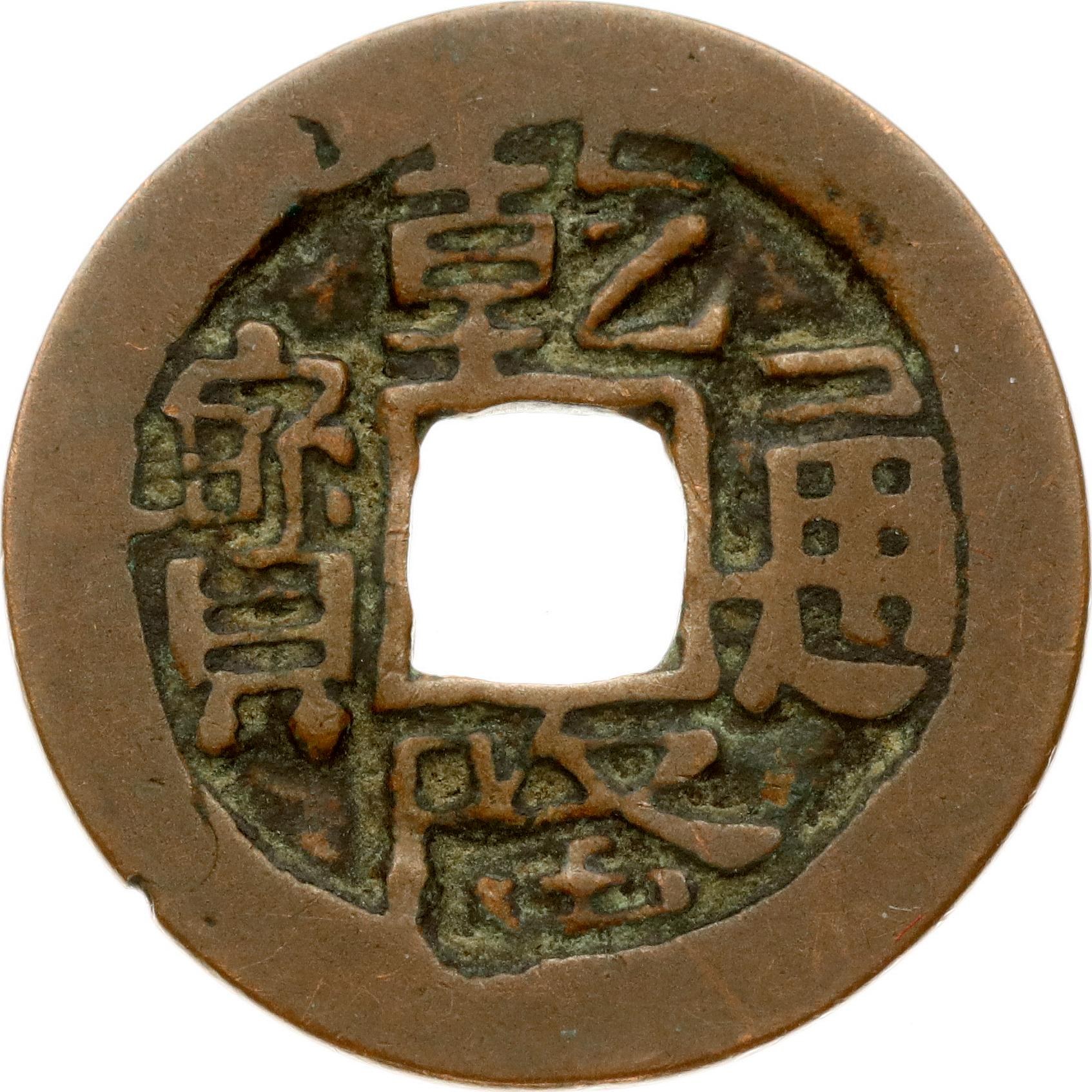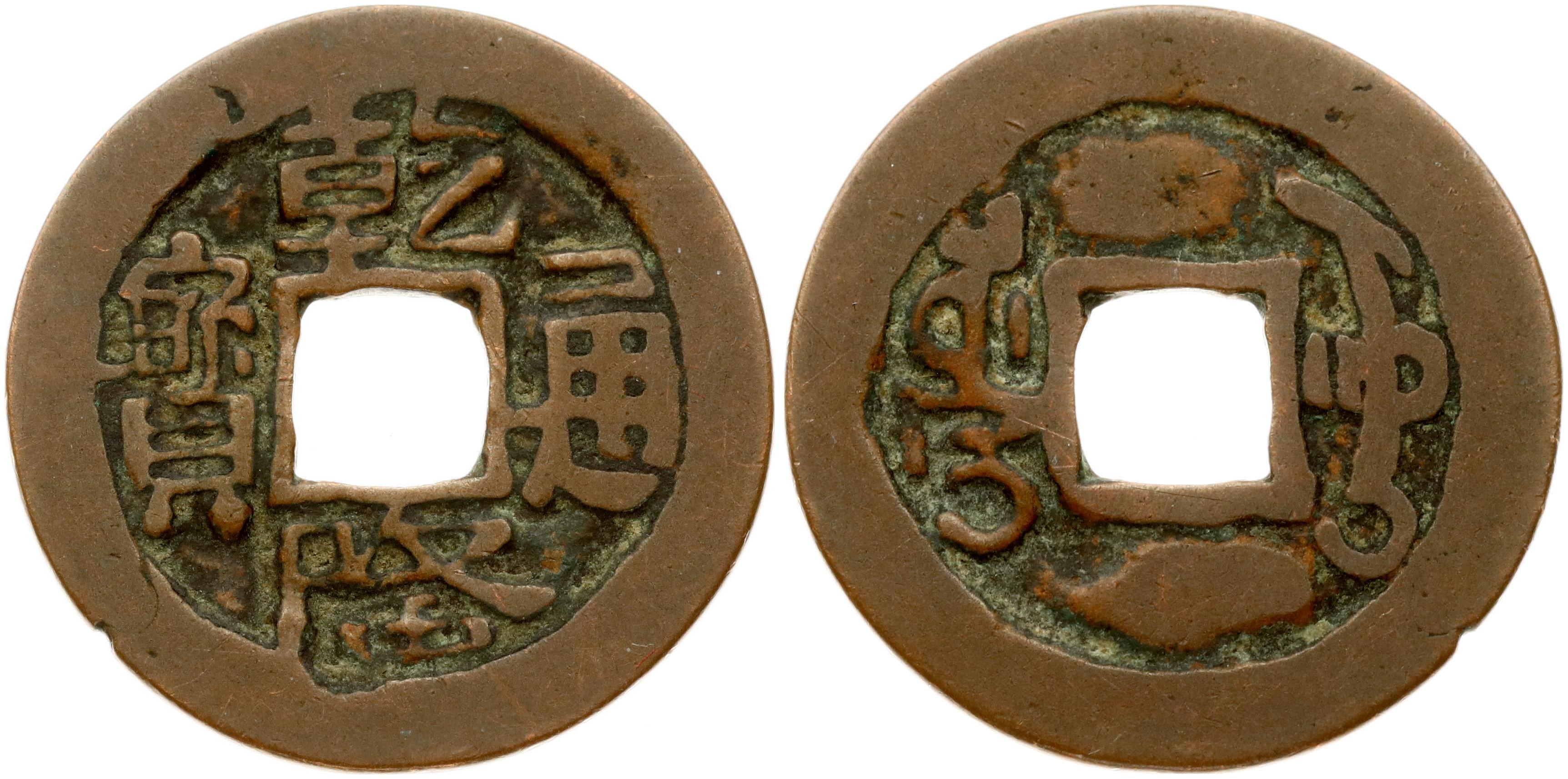 China Sinkiang Province 10 Cash (1736-1795) Obverse: Four Chinese ideograms read top to bottom. Reverse: Two words separated by the hole; all with one Chinese ideogram above and one below. Bronze 3.46g.