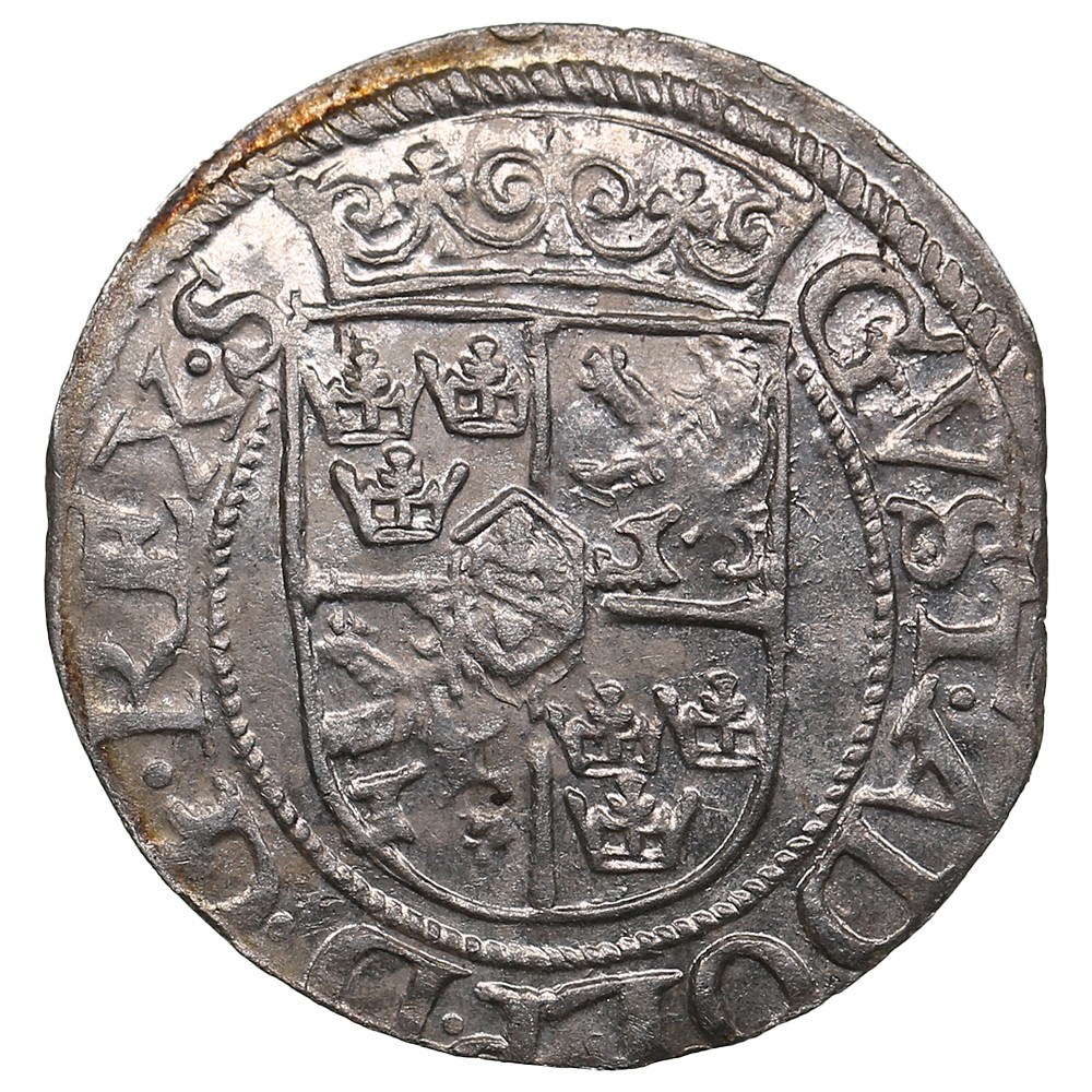 Obv.: Crowned shield bearing the quartered arms of Sweden and House of Folkung, Vasa arms at center; “GVST·ADOLP·D·G·REX·S”.