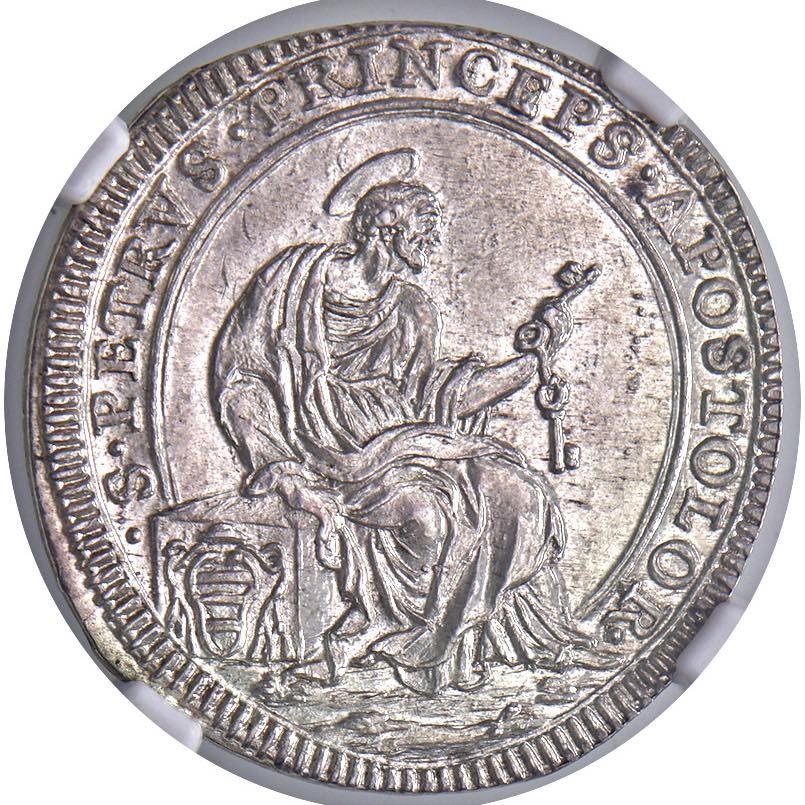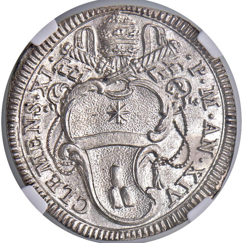 Clemente XI (1700-1721) Giulio A. XIV - Munt. 116 AG R Conservazione eccezionale. In slab NGC MS 65 cod. 2790554-008. Top pop, miglior esemplare certificato NGC
