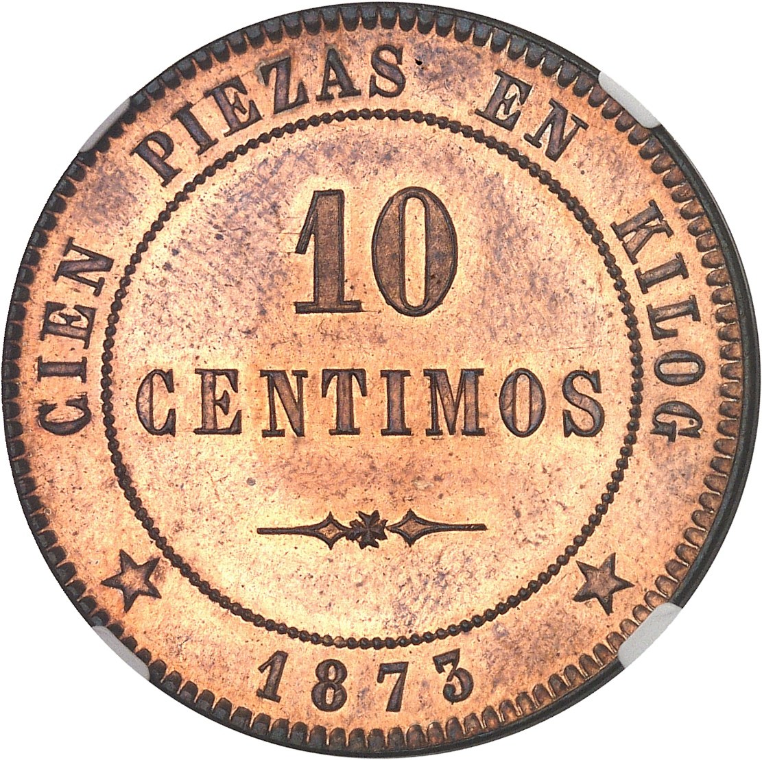 Co-Principauté. 10 centimos, révolution espagnole 1873. NGC MS 65 RB (5883933-019).