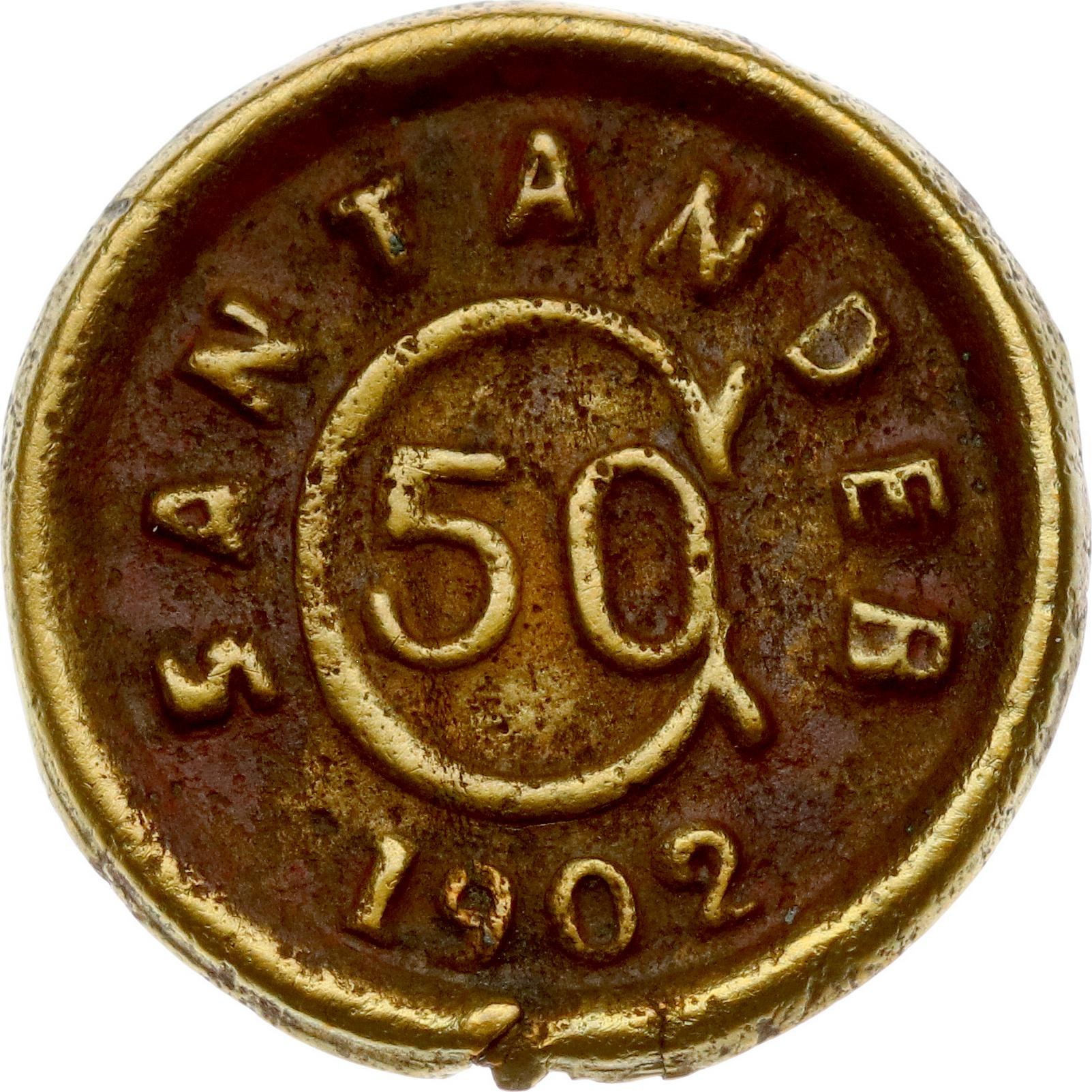 Colombia, Santander. 50 Centavos 1902, Civil War Coinage. Brass 1.19 g. KM?A3.