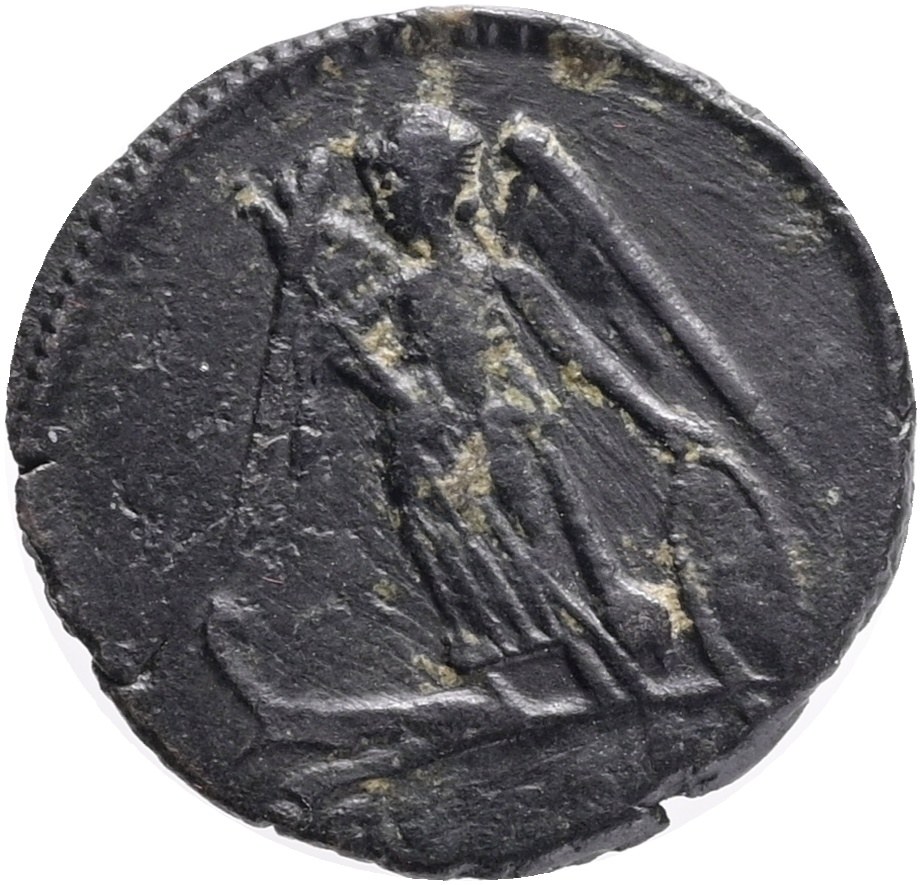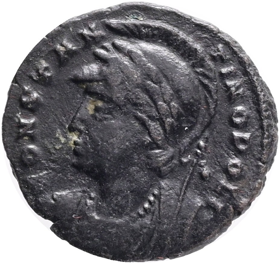 CONSTANTINE I. 307-337 AD. AE Follis , Constantinopolis, Obv: CONSTANTINOPOLI, helmeted bust left, Rev: Victory standing left, one foot of prow with sceptre and leaning on shield, mintmark CONSZ. RIC VII 63, Bronze Weight 2,29g