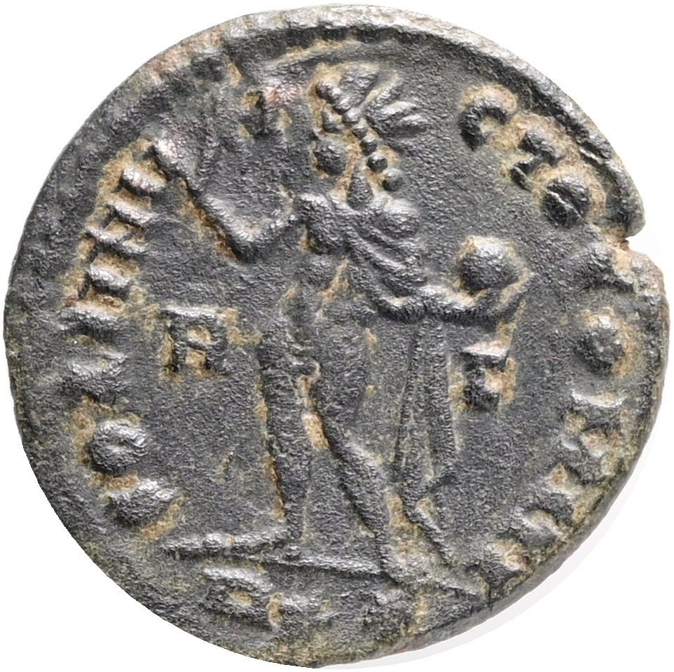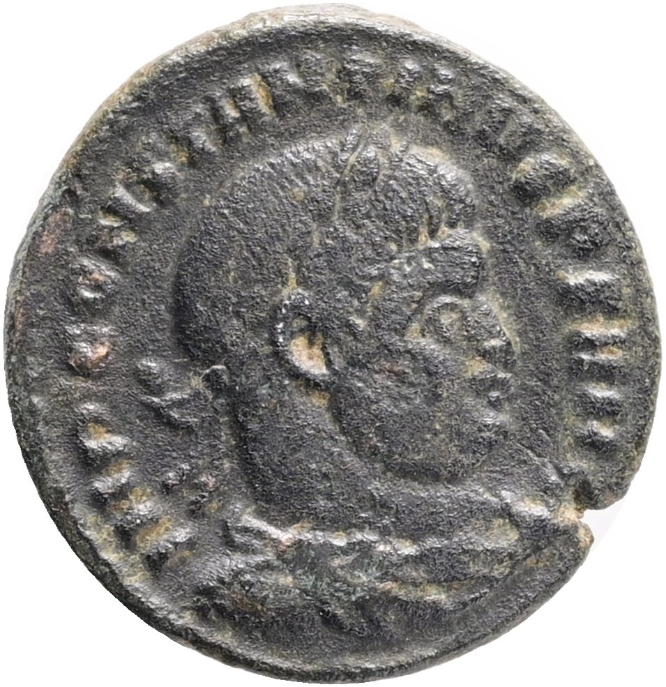 CONSTANTINE I. 307-337 AD. Æ Follis .Obv.: CONSTANTINVS P F AVG, laureate and cuirassed bust right. Rev.: SOLI INVIC-TO COMITI, Sol standing left, raising right hand and holding globe in left. AE 2,9 g