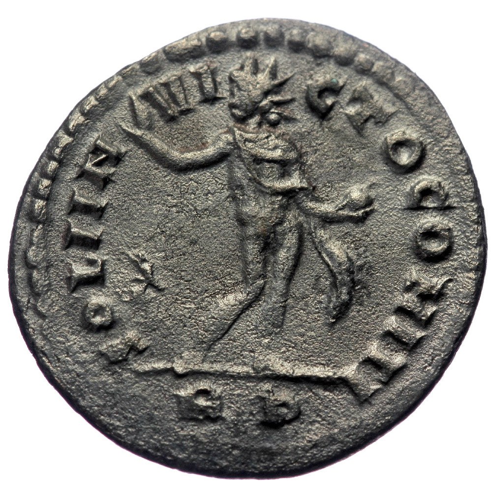 Rev: SOLI INVICTO COMITI, Sol standing left, holding globe and raising right hand; A in left field, RP in exergue.