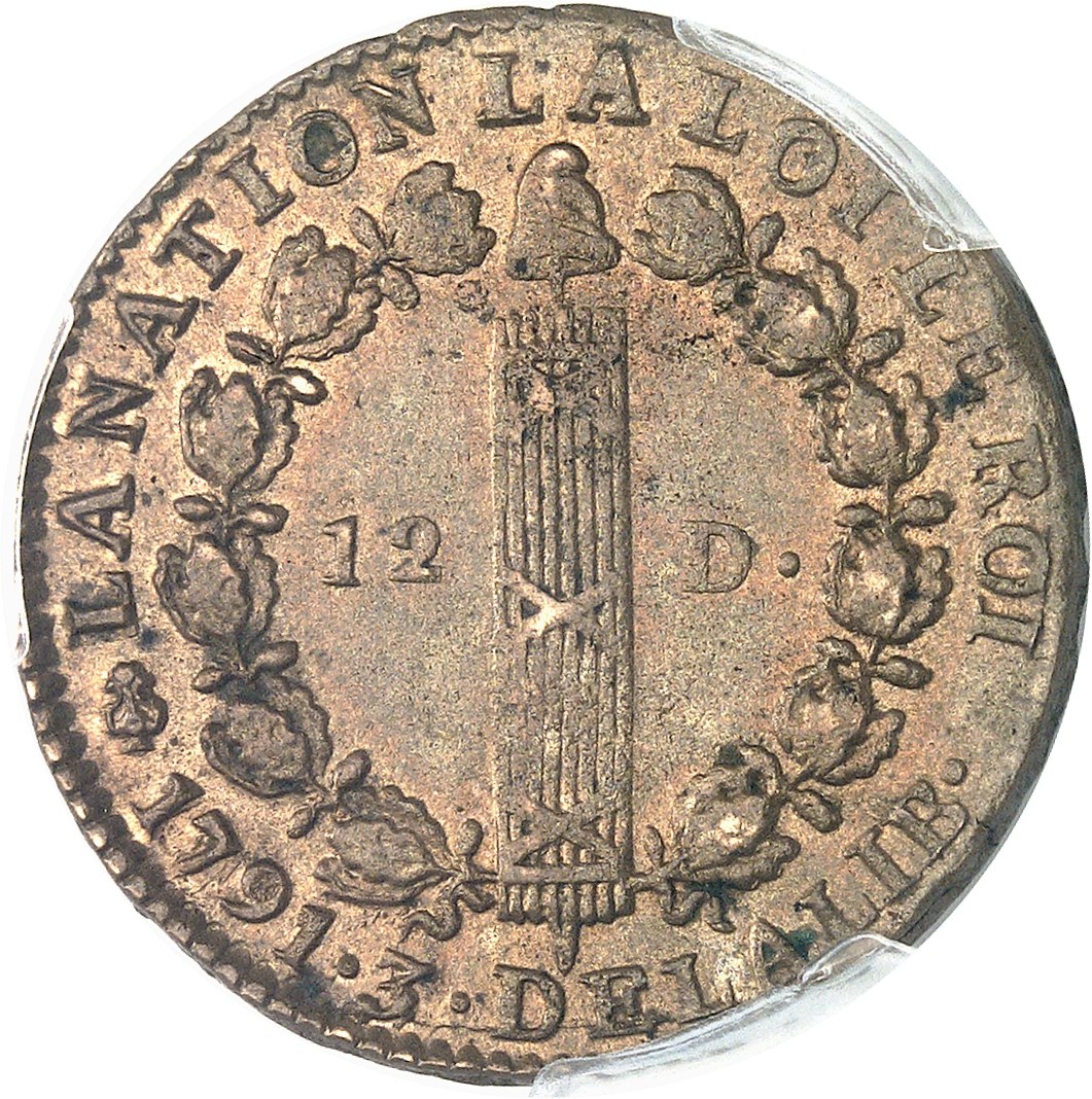 Constitution (1791-1792). 12 deniers FRANÇOIS 1791 - An 3, A, Paris (point). PCGS MS63 (49097096).
