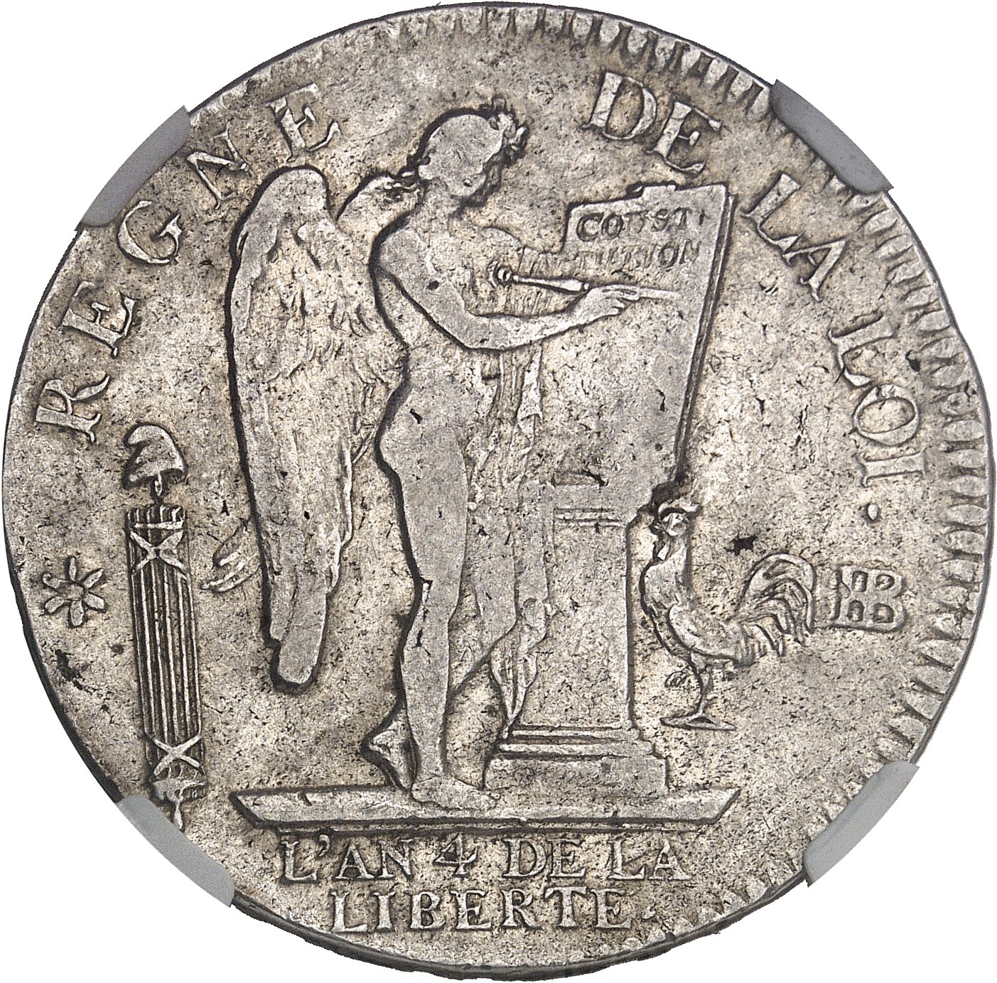 Constitution (1791-1792). Écu de 6 livres FRANÇAIS 1792 - An 4, BB, Strasbourg. NGC XF 40 (6636328-037).